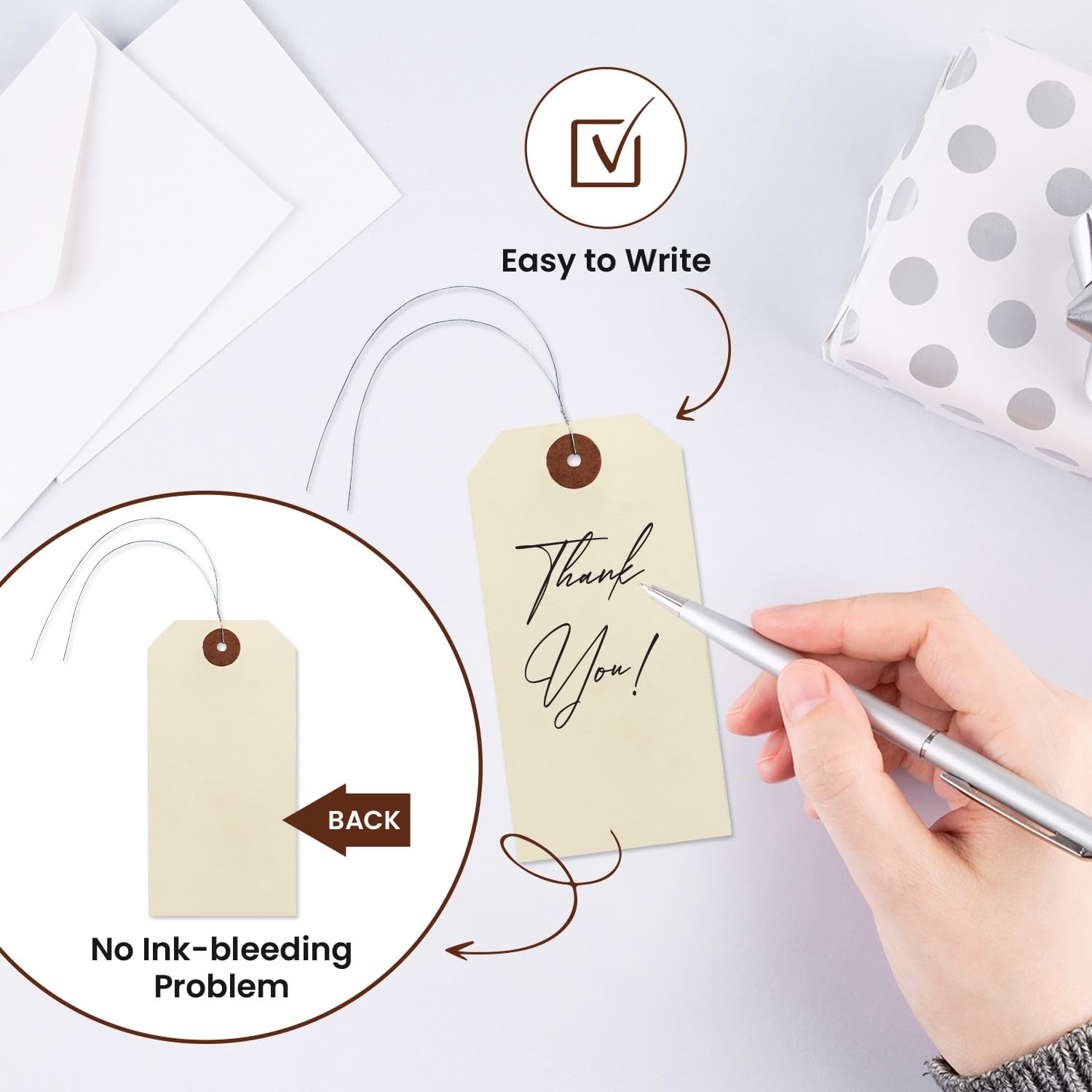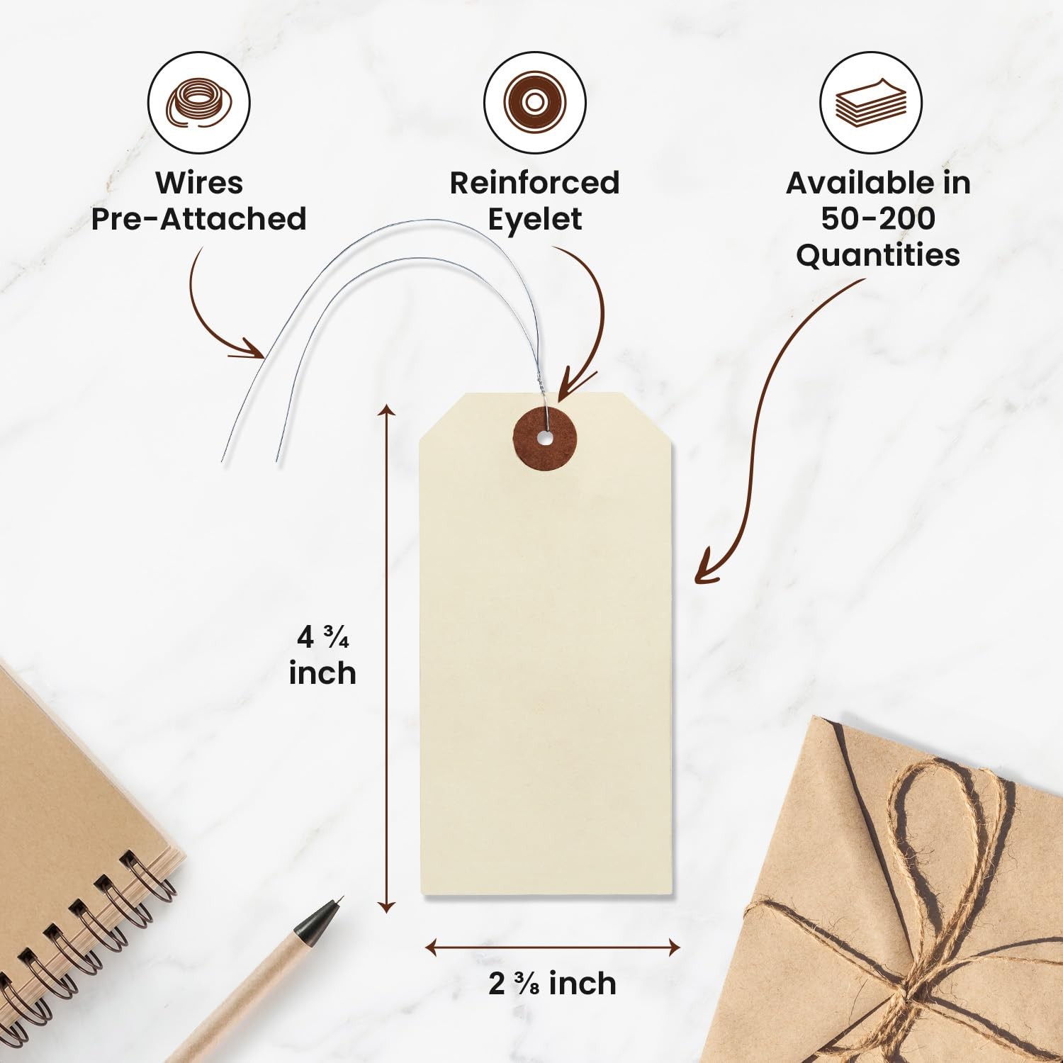 VHC Brands Blank Manila Shipping Tags with Pre-Attached Wire Hangers