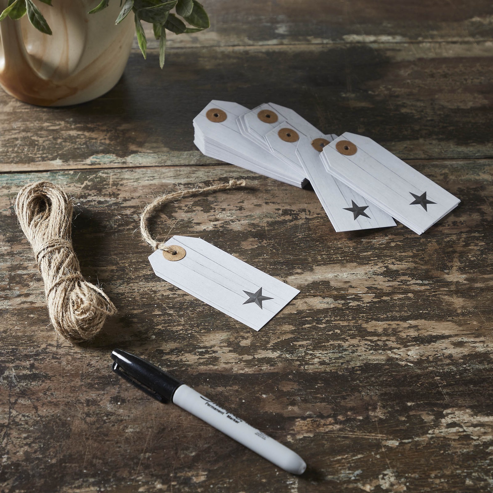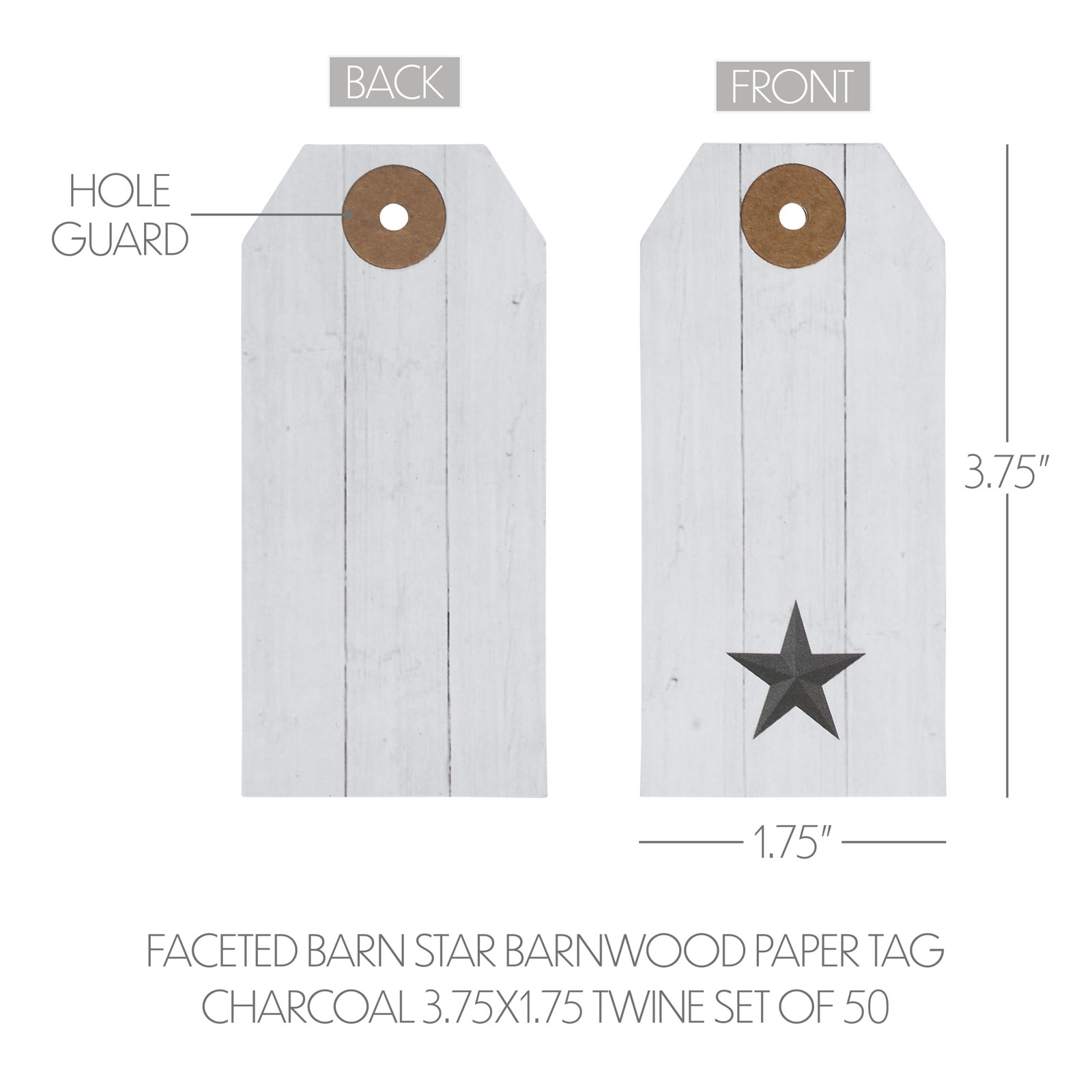 VHC Brands Faceted Barn Star Paper Tag Charcoal 3.75x1.75 w/ Twine Set of 50