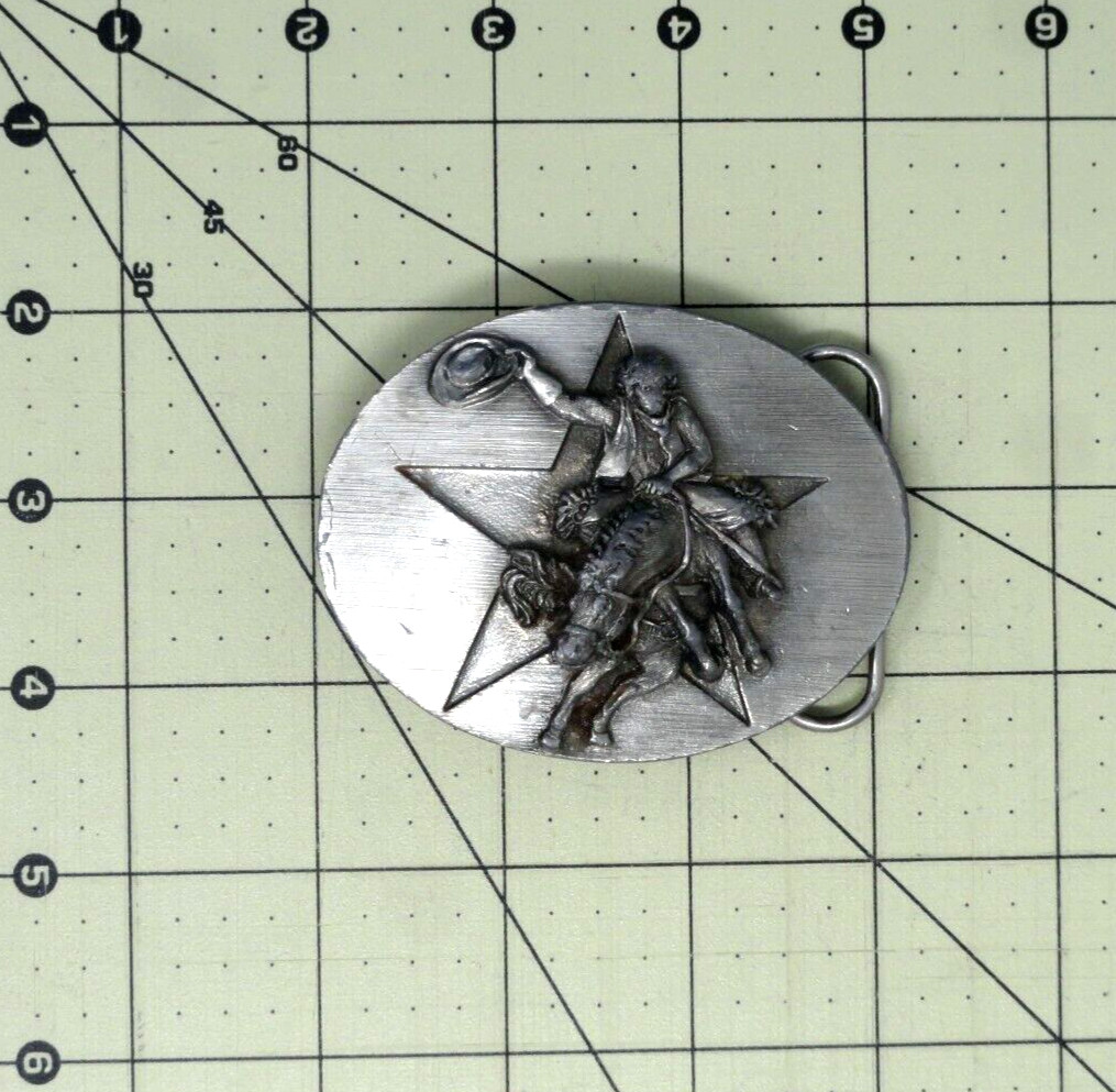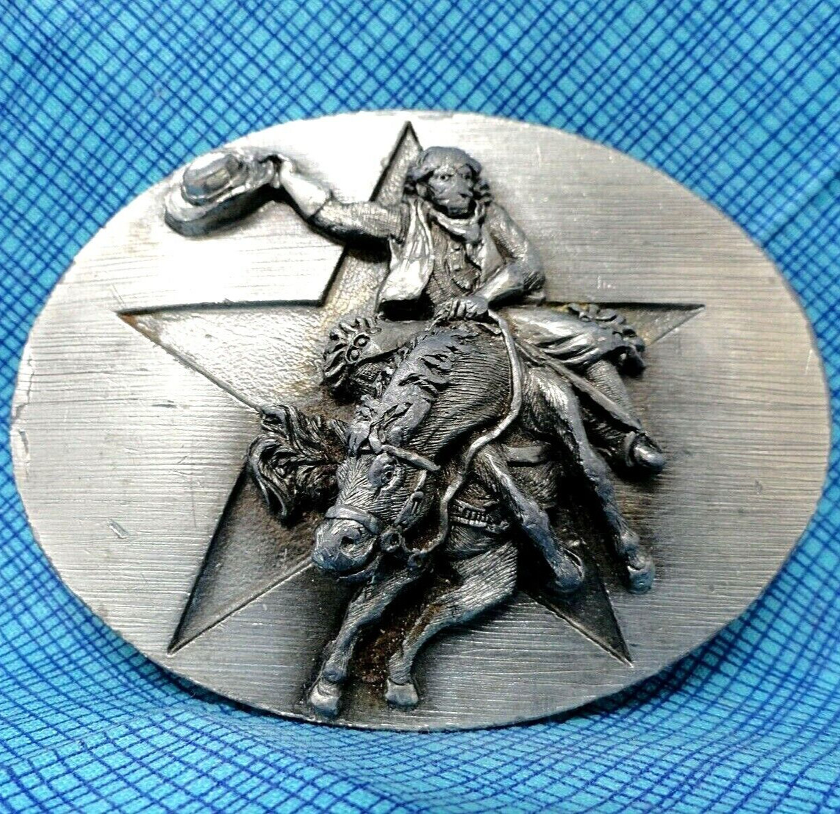 Star Saddle Bronc Cowboy Belt Buckle Rodeo Western Vtg 90s Bergamot .TWY155