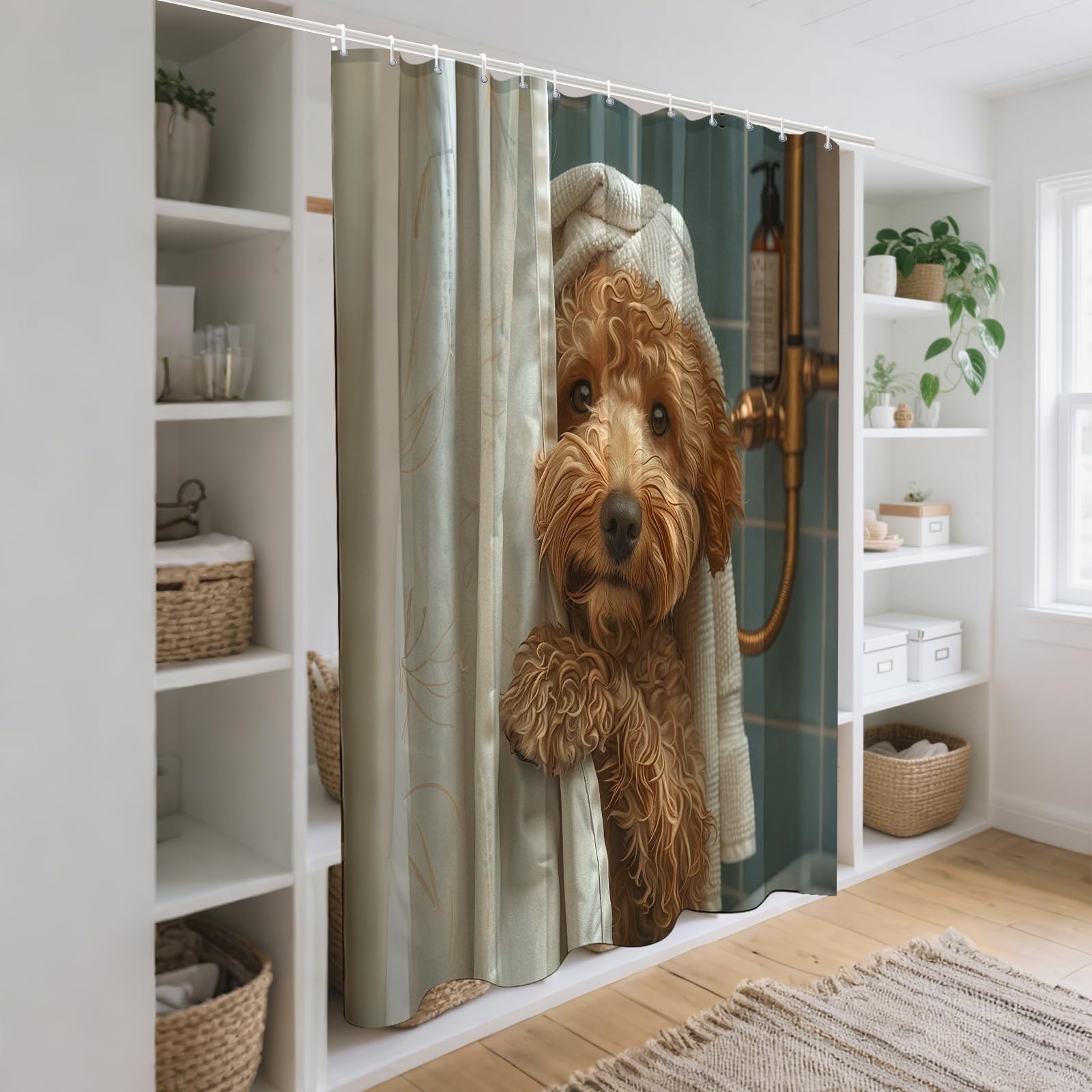 как выглядит Cute Teddy Dog Shower Curtains Funny Dog Barn Door Decor Polyester Fabric Wat... фото