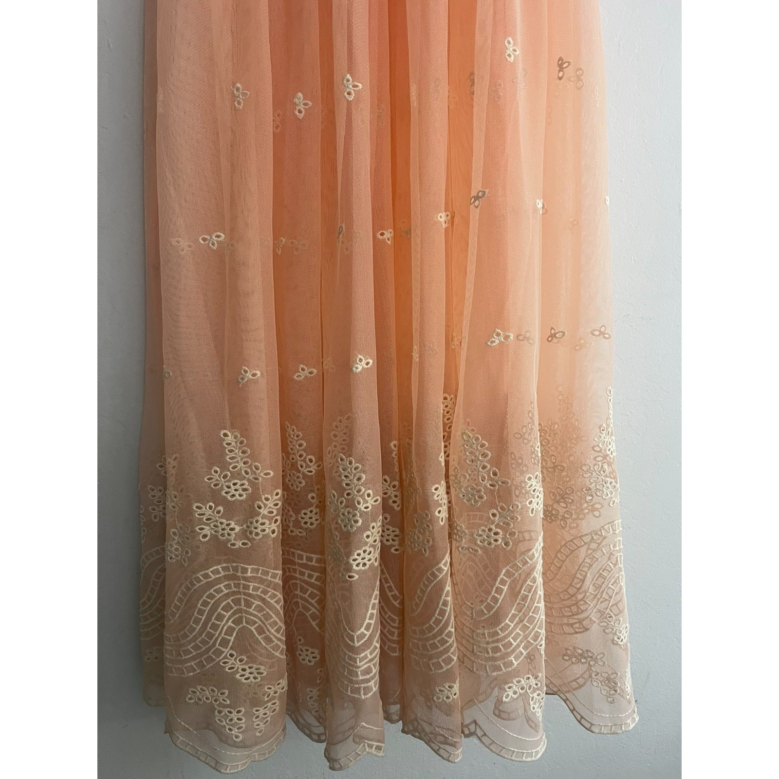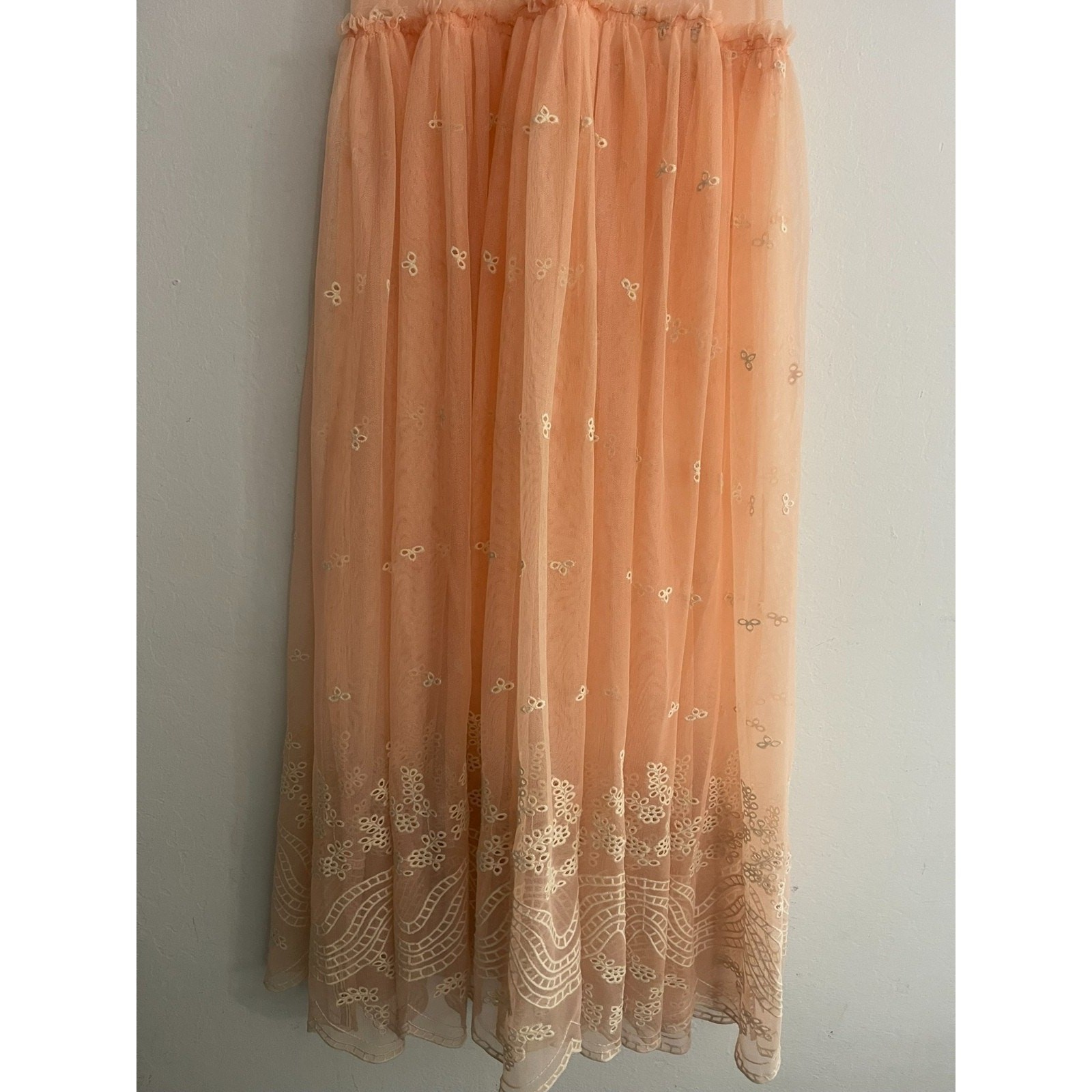 Free People Intimately S Slip Dress Peach Mesh Lace Overlay Tiered Nowhere To Go