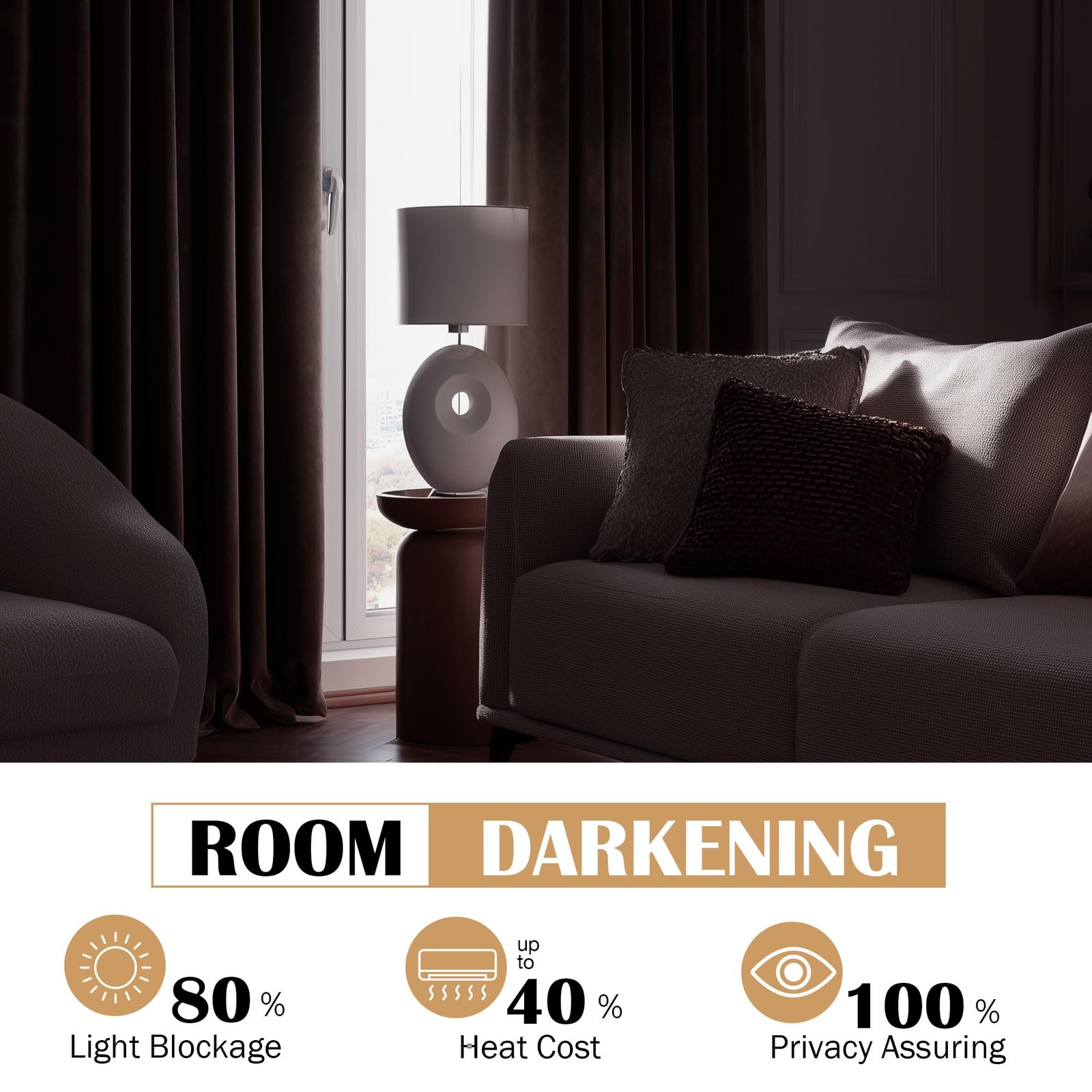 Beauoop Coffee Brown Velvet Curtains 84 52W x 84L Pack of 2 ,