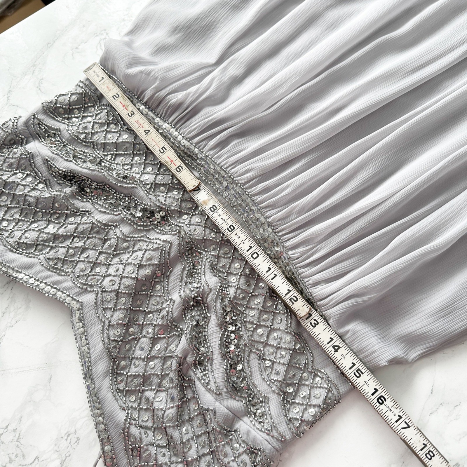 как выглядит Adrianna Papell Silver Embellished Beaded Spaghetti Strap Formal Dress Size 10 фото