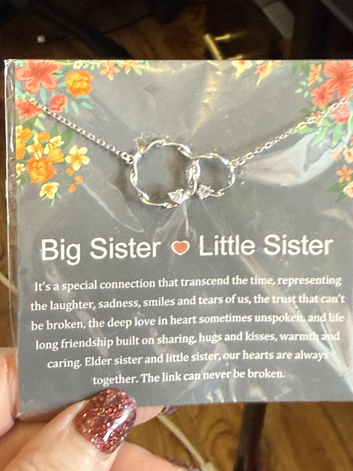 как выглядит Sliver Tone Necklace Round Crystal Heart Big Sister Little Sister Gift фото