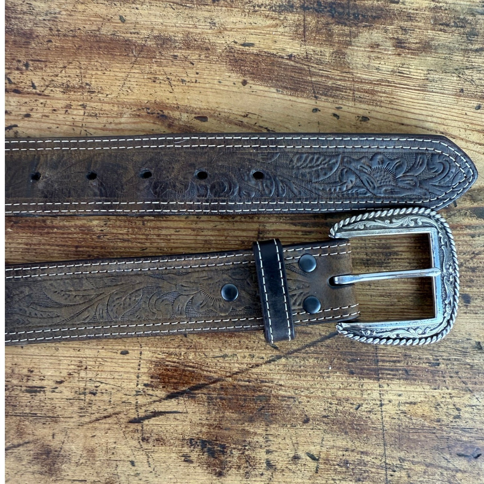 как выглядит Ariat 2007 Special Addition Womens Brown Leather Western Belt Silver Buckle 38 фото