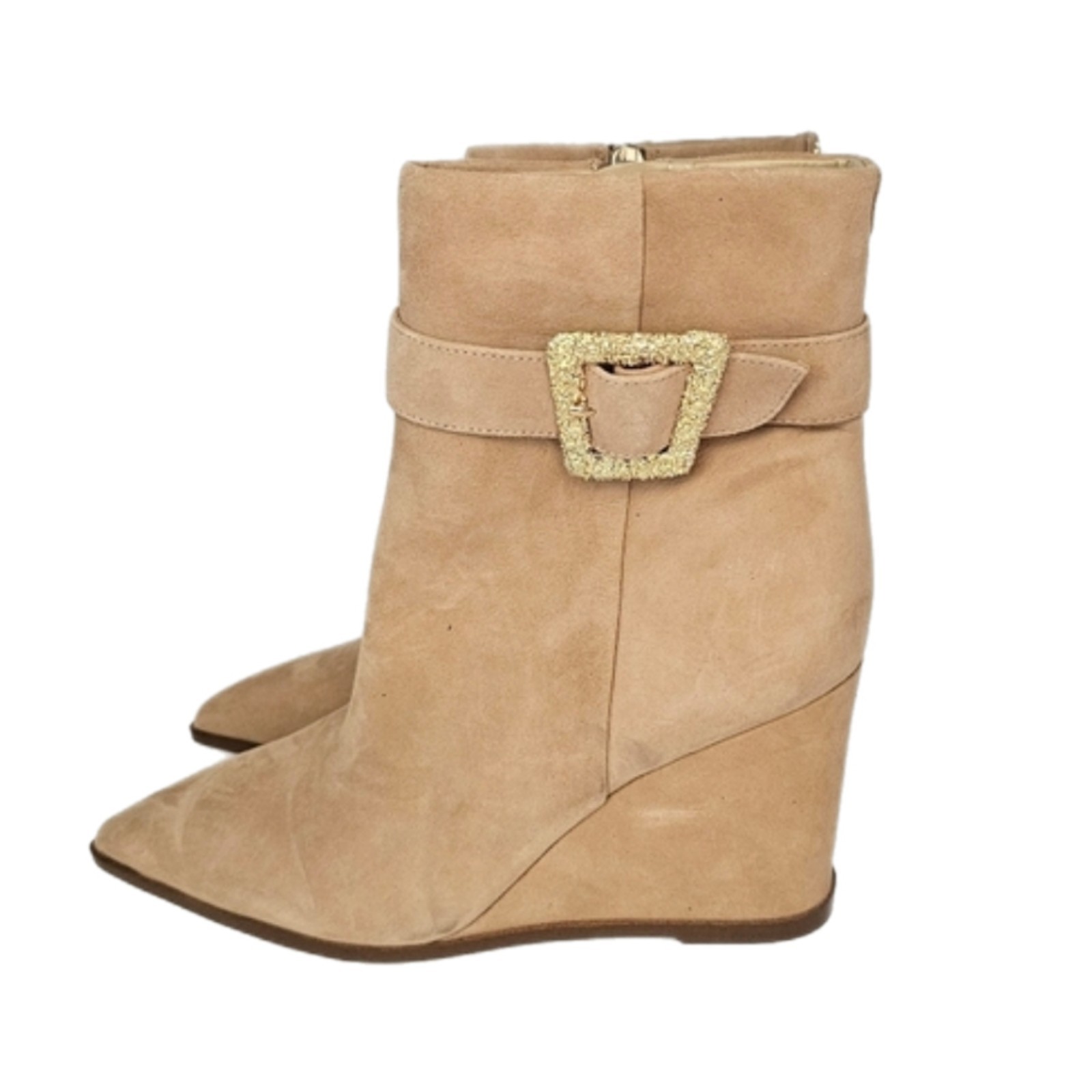 как выглядит Sam Edelman Weslie Buckle Wedge Bootie Golden Carmel Suede Size 7.5 NWOB фото