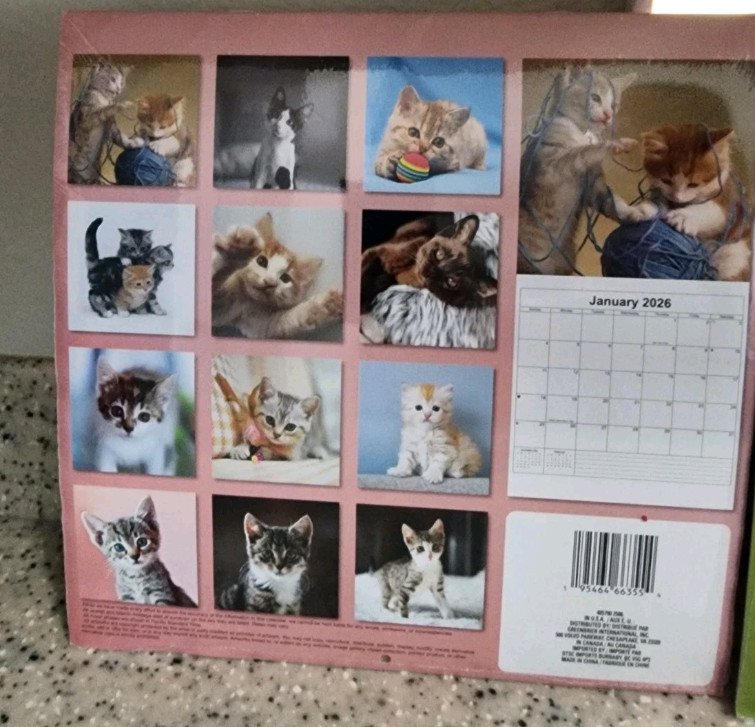 как выглядит 2026 Lot Of 2, PUPPIES KITTENS Wall Calendar 12 Month 12 X 24 фото