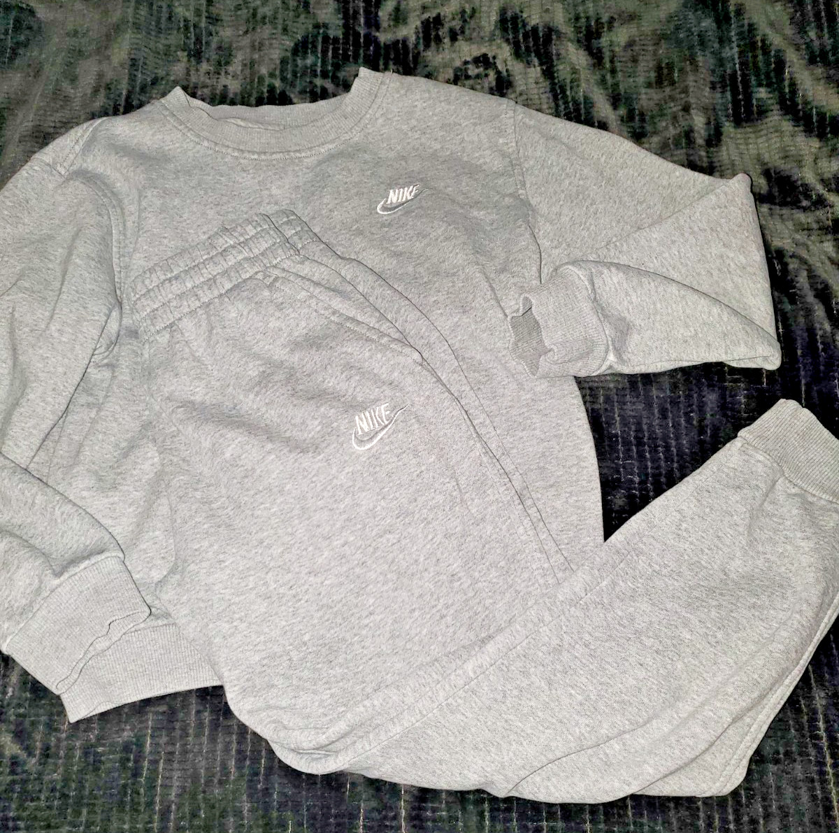 как выглядит Nike Sportswear Club Fleece Kids Sweatshirt and Jogger Set Gray size Medium фото