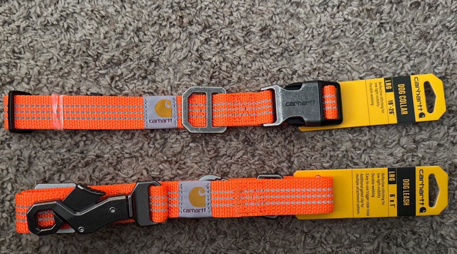 NEW Carhartt Dog Leash 6'X 1 Collar Large Neck 18- 26 Orange Reflective