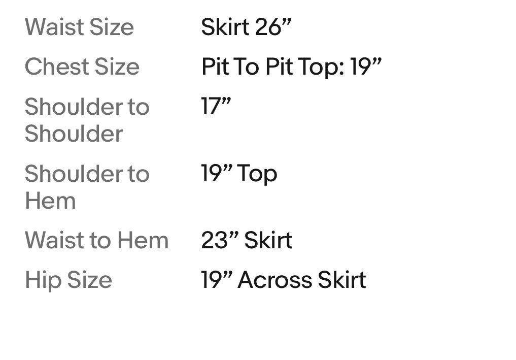 Hip Size: 19” Across Skirt