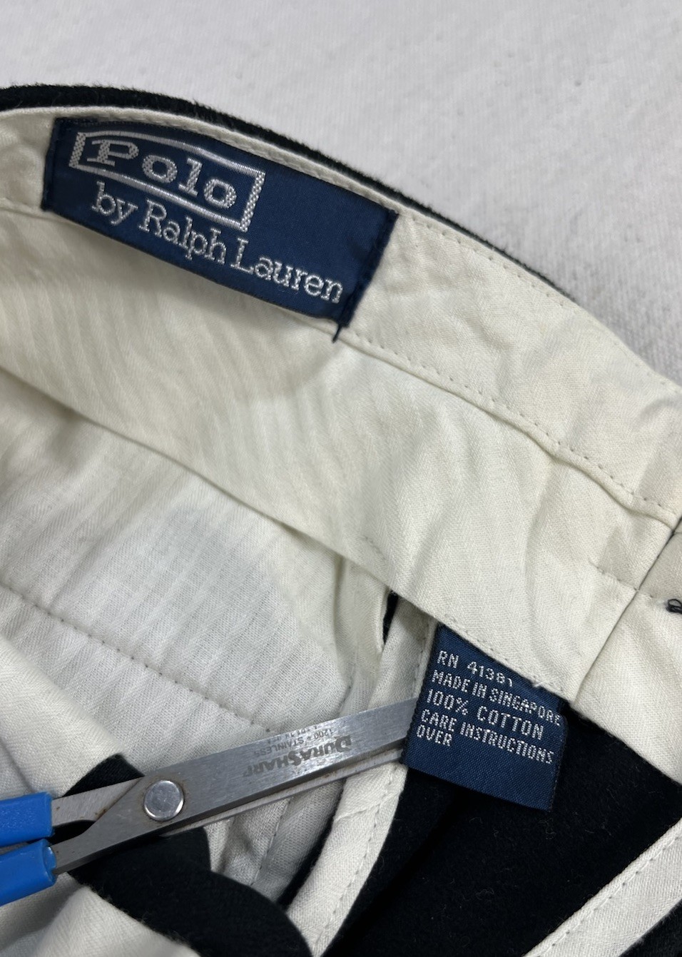 как выглядит VTG 90s POLO RALPH LAUREN Brushed Cotton Trousers Flat Front Black Buckle 30/27 фото