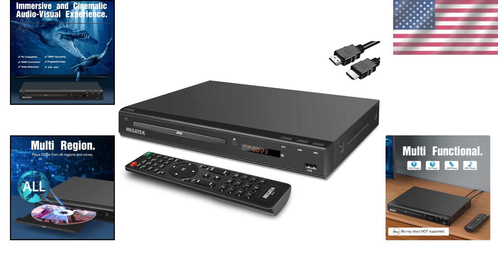 Region-Free HDMI DVD Player for TV, Compact CD/DVD Player for Smart TV, USB P...