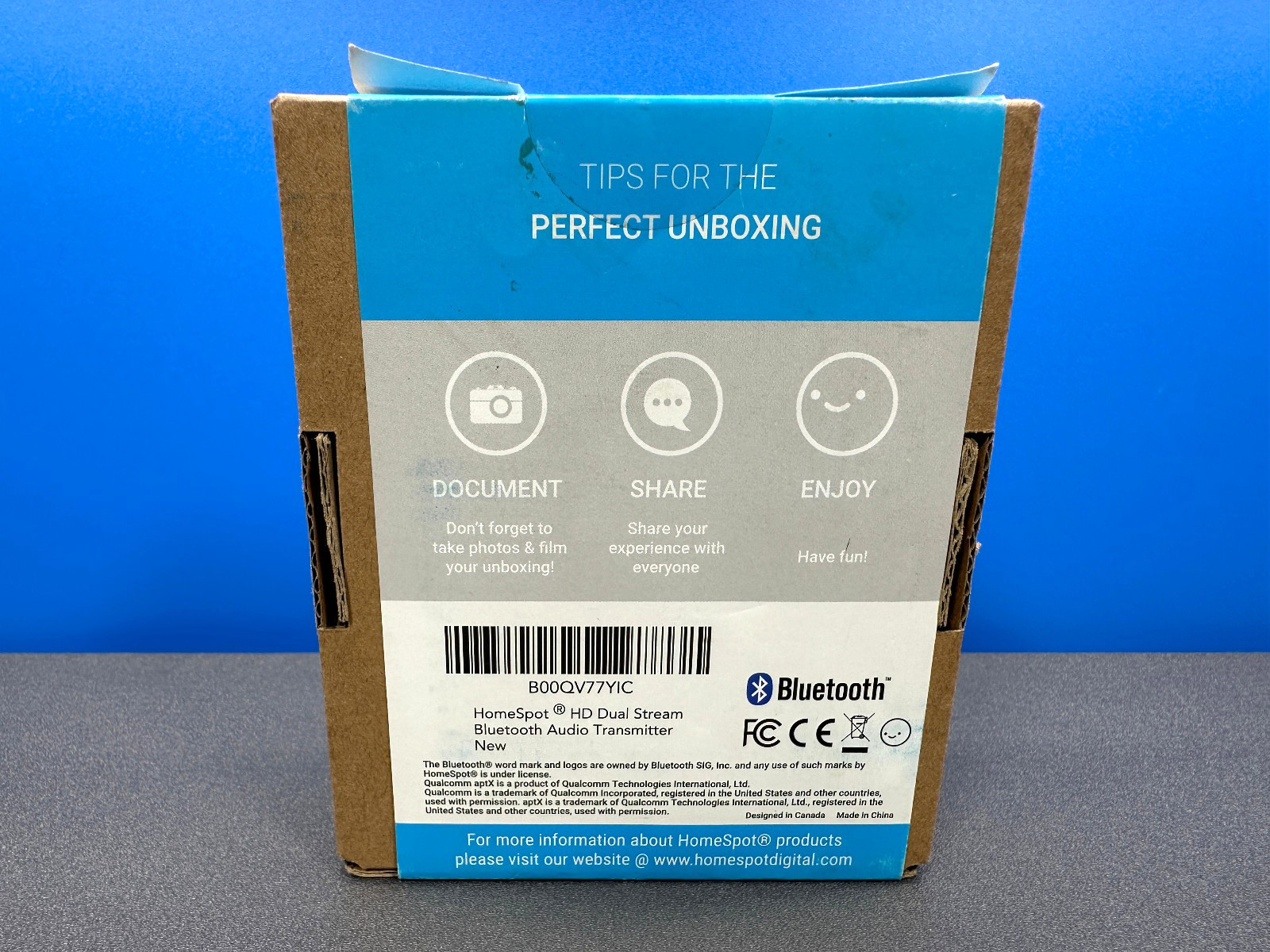 HOMESPOT HOME SPOT HD DUAL STREAM BLUETOOTH AUDIO TRANSMITTER BTADP-128-D NEW