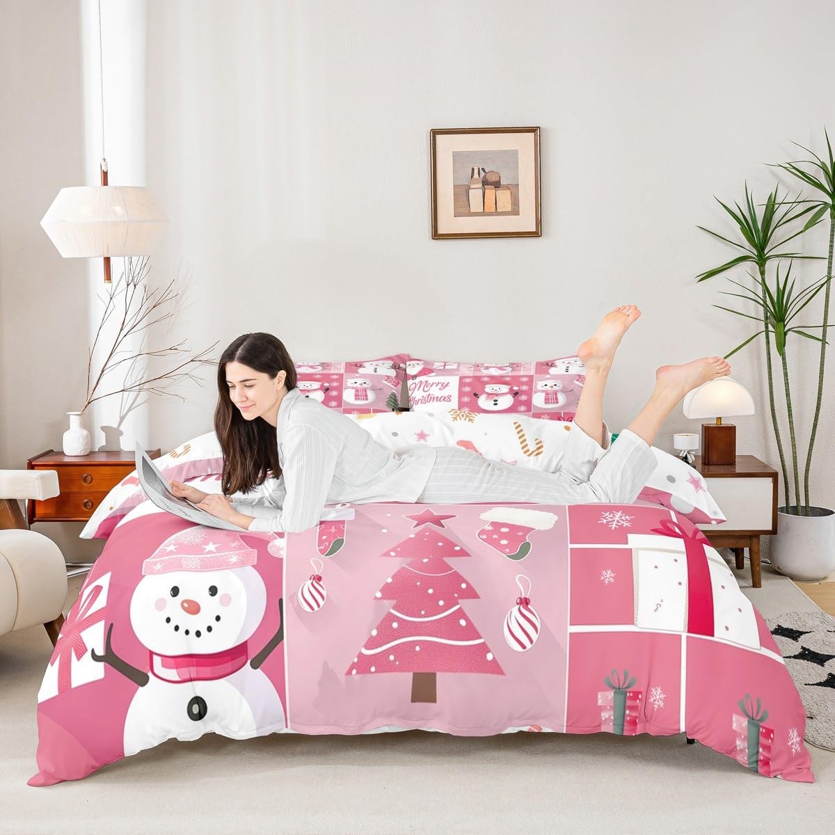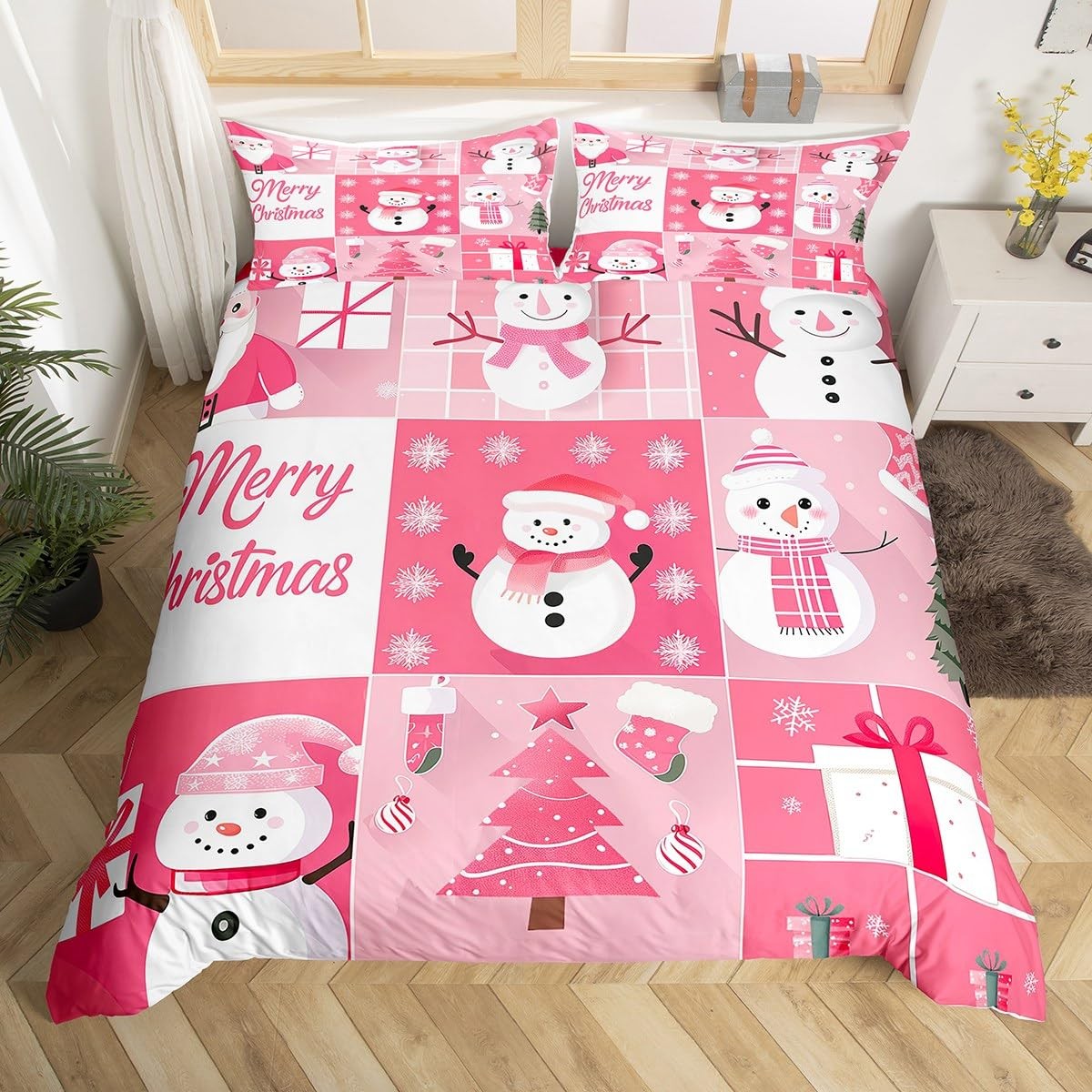 как выглядит Xmas Duvet Cover Set King Size,Snowman Christmas Tree Snowflake Comforter Cov... фото