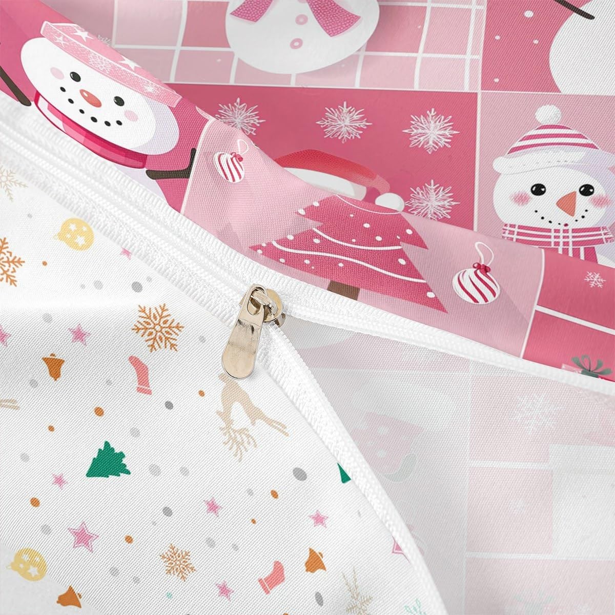 Xmas Duvet Cover Set King Size,Snowman Christmas Tree Snowflake Comforter Cov...