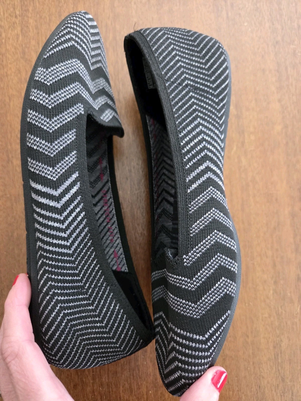 как выглядит Skechers Cleo Point Air-Cooled Memory Foam Flats Sz 6.5 Black White Zig Zag фото