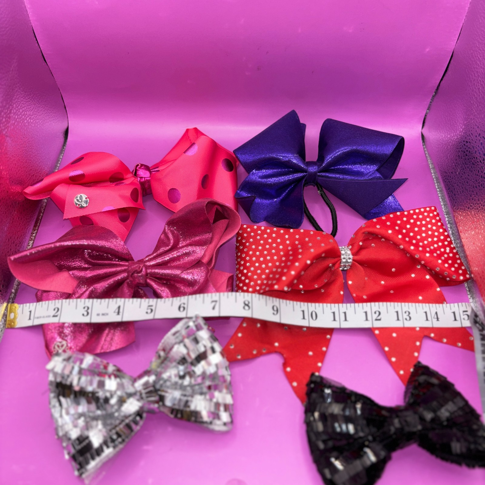 как выглядит Jojo Siwa-Style Large Hair Bows w/ alligator clips Or Elastics Competition 0986 фото