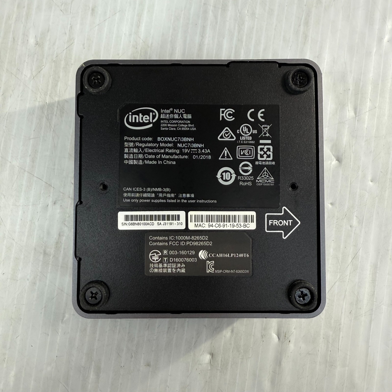 Модель: Intel Nuc NUC7i3BNH