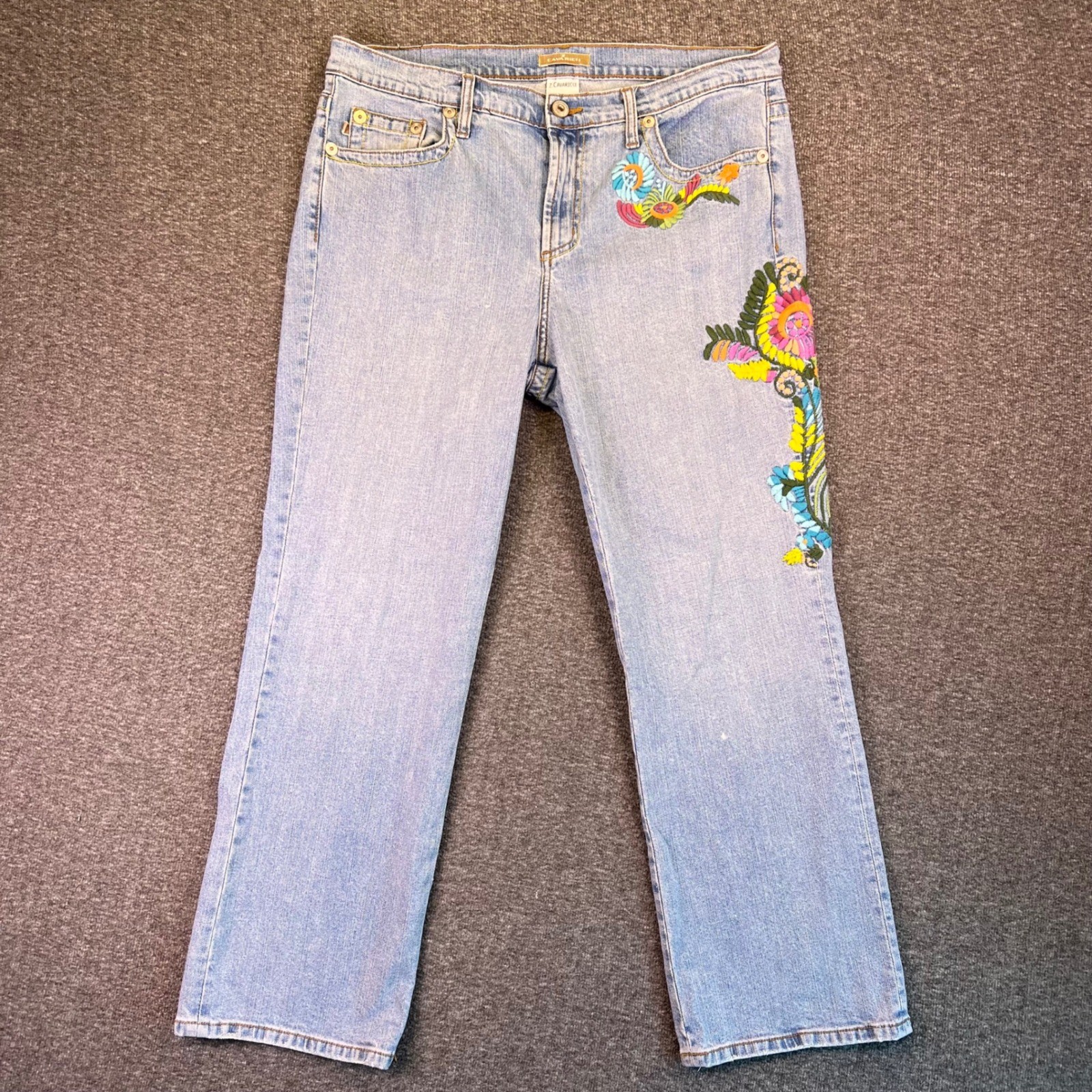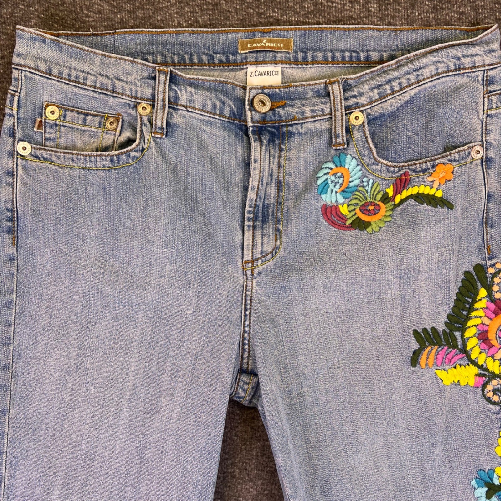 как выглядит Vintage 90s Embroidered Floral Jeans Womens 14 Light Wash Authentic Z. Cavaricci фото