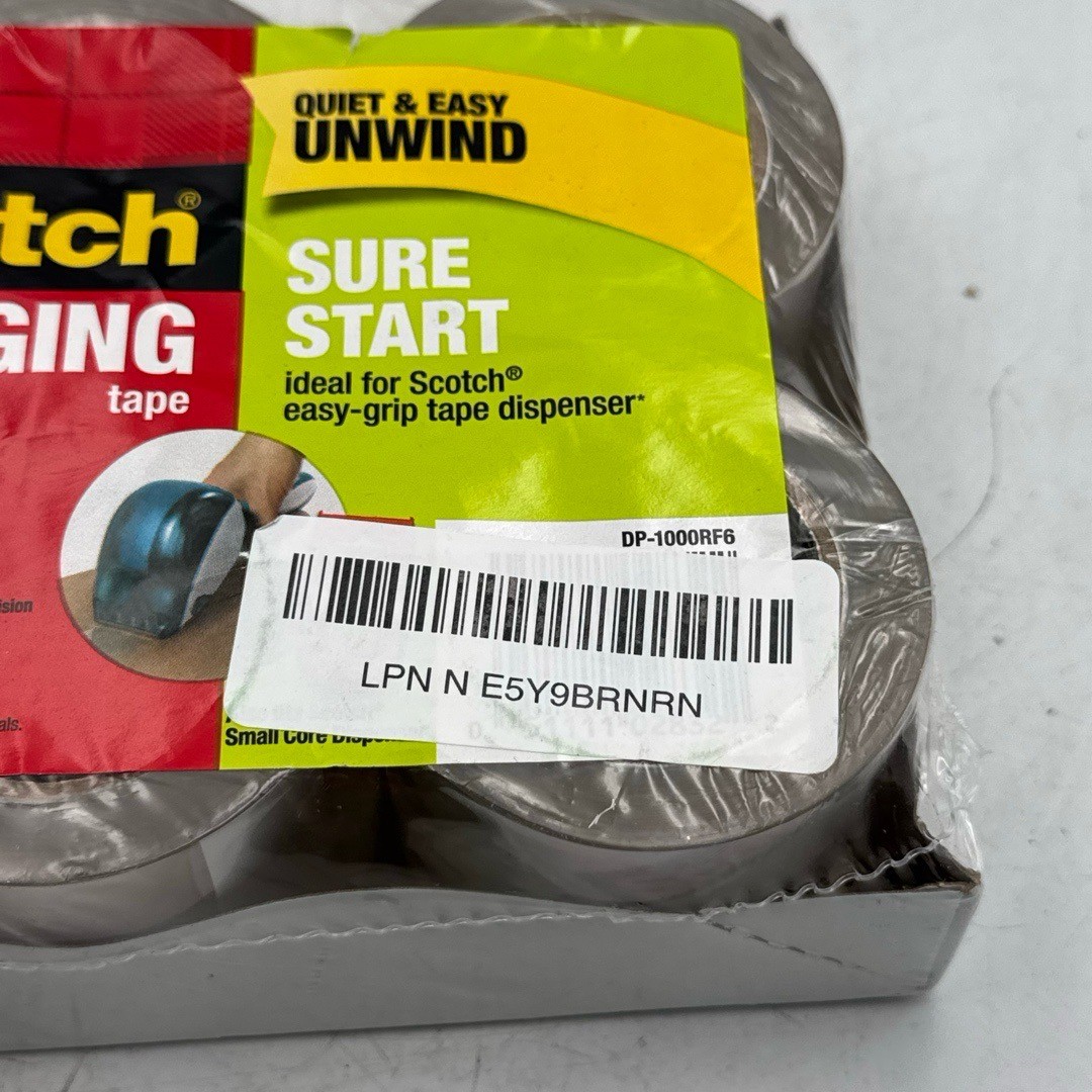 Scotch Sure Start DP-1000RF6 Packaging Tape 6 Rolls Quiet Strong Seal