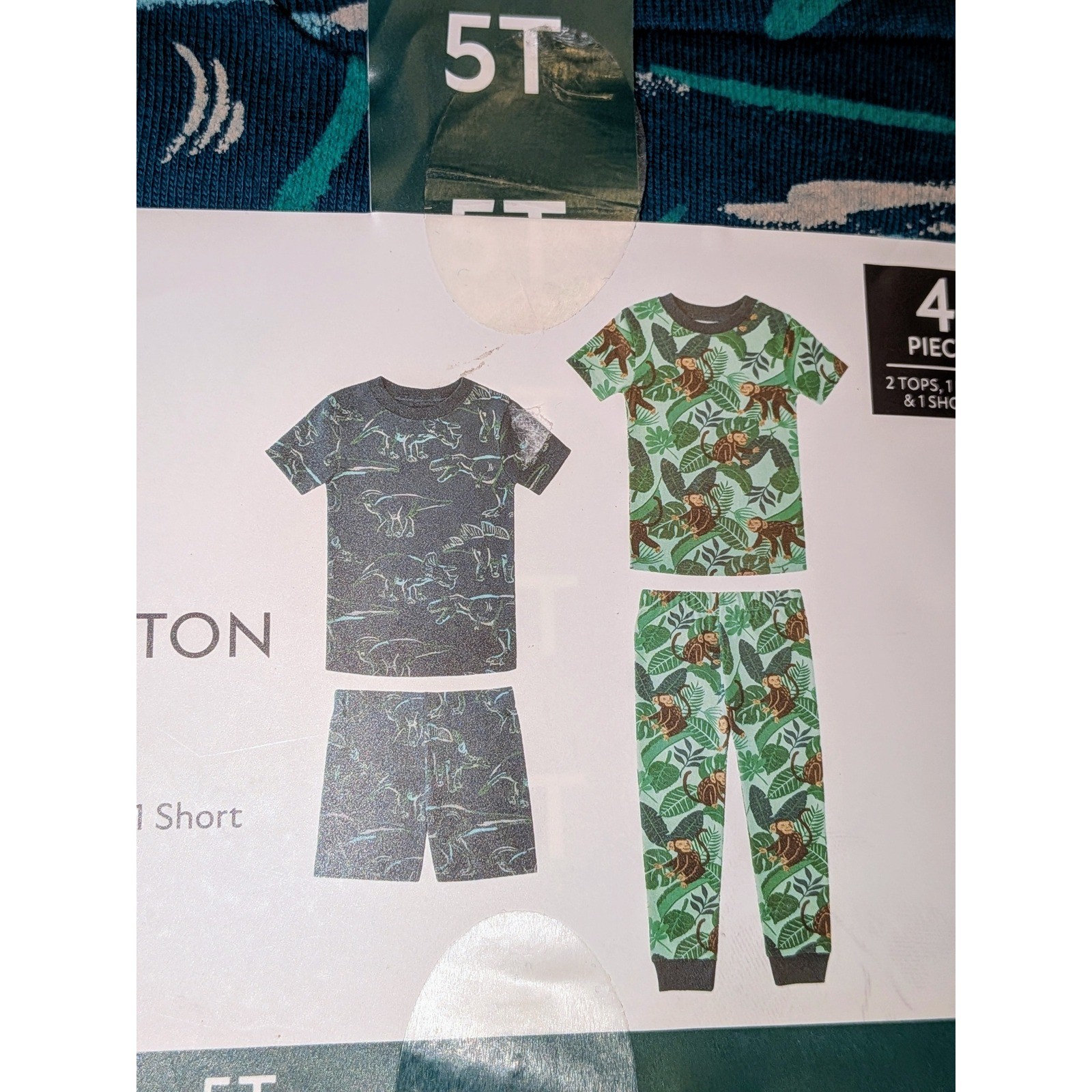 Member's Mark 4 Piece Organic Cotton Pajama Set Boys Size 5T Dinosaur Monkey NEW