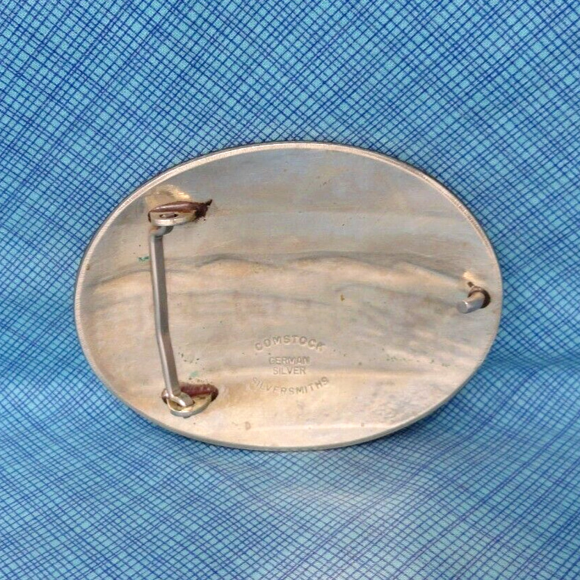 Steer Wrestling Rodeo Cowboy Belt Buckle German Silver Vtg Comstock SS .TAZ840