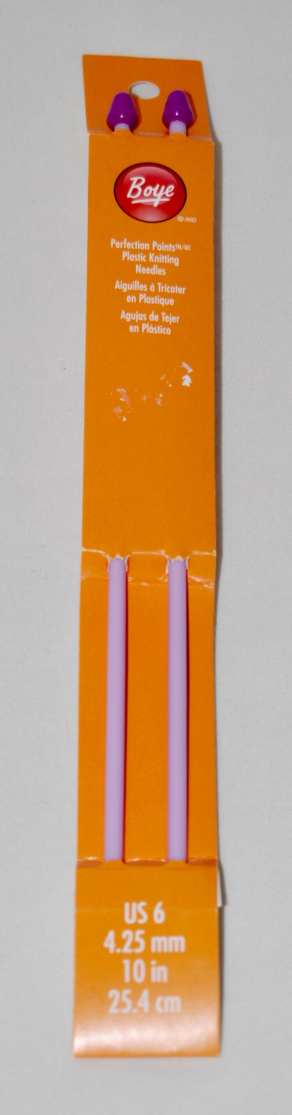 New Set of 3 Boye Plastic Straight 10in Knitting Needles Includes sz US 5 6 7