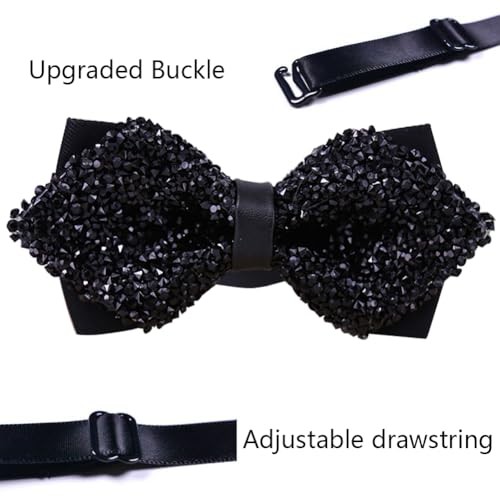 Rhinestone Bowtie for Men Adjustable and Pre-Tied Bow Ties Sparkling Black