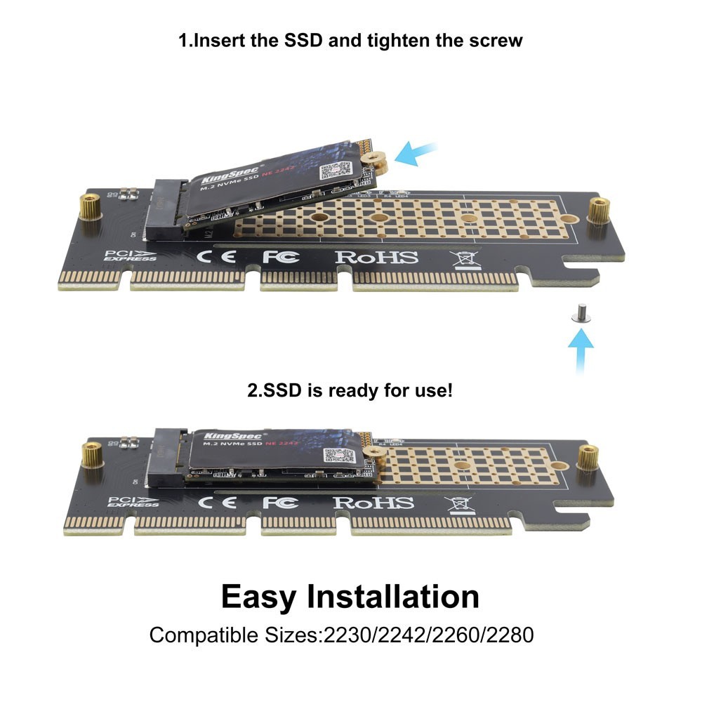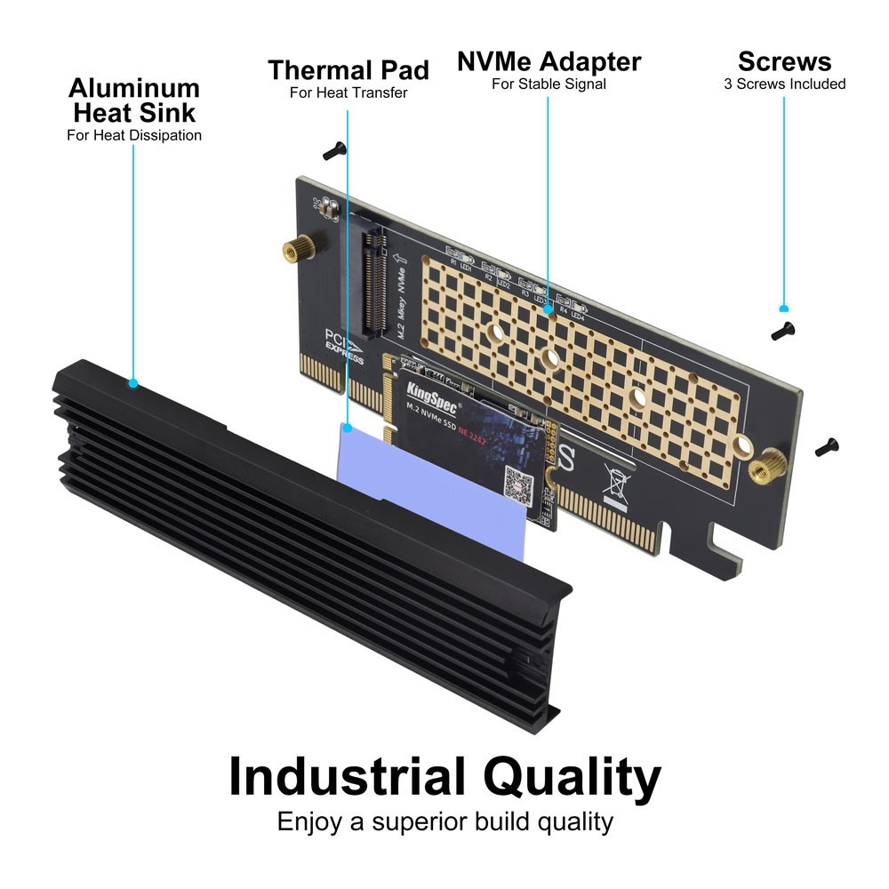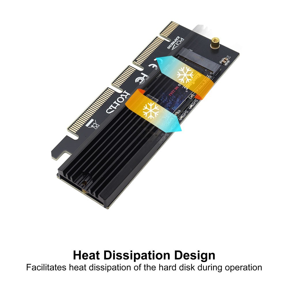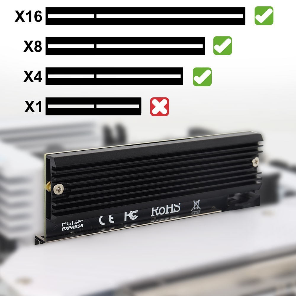 M.2 NVMe SSD to PCIe X16/X8/X4 Adapter with Aluminum Heatsink, Not Support SATA