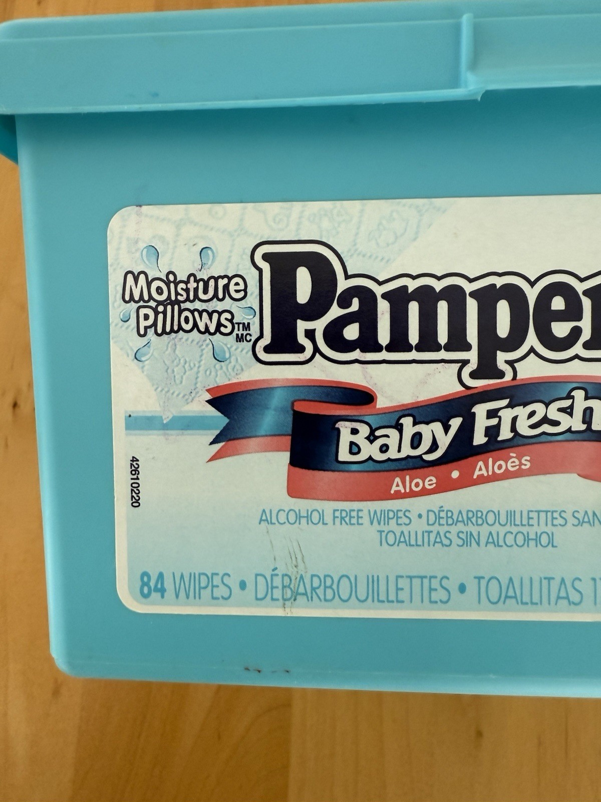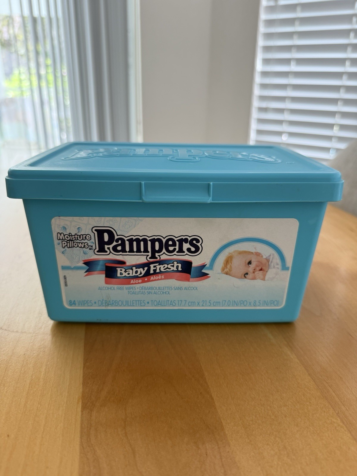 как выглядит VTG 1998 Pampers Baby Wipes Container Baby Fresh Aloe Blue Empty prop Read Ad фото
