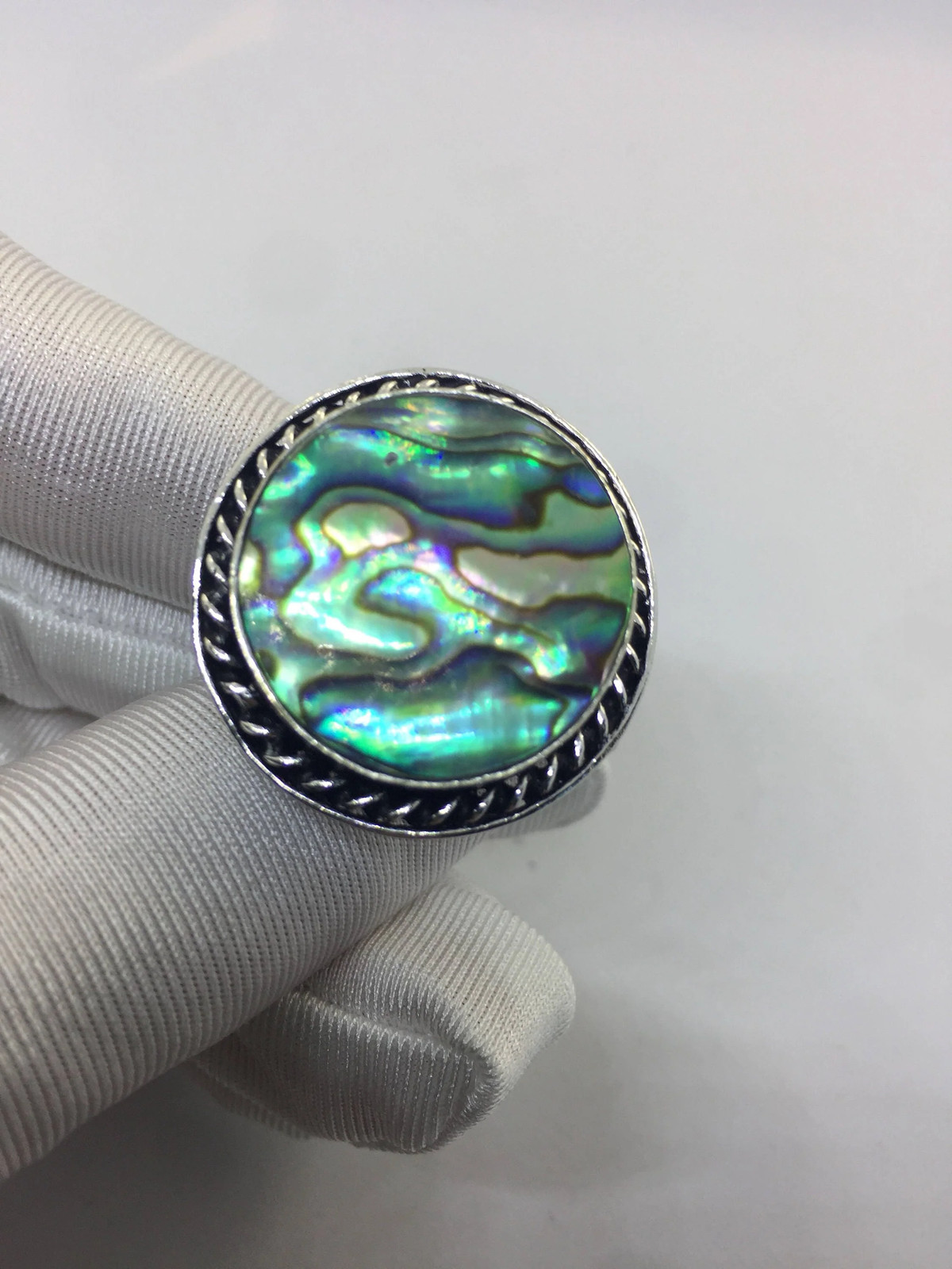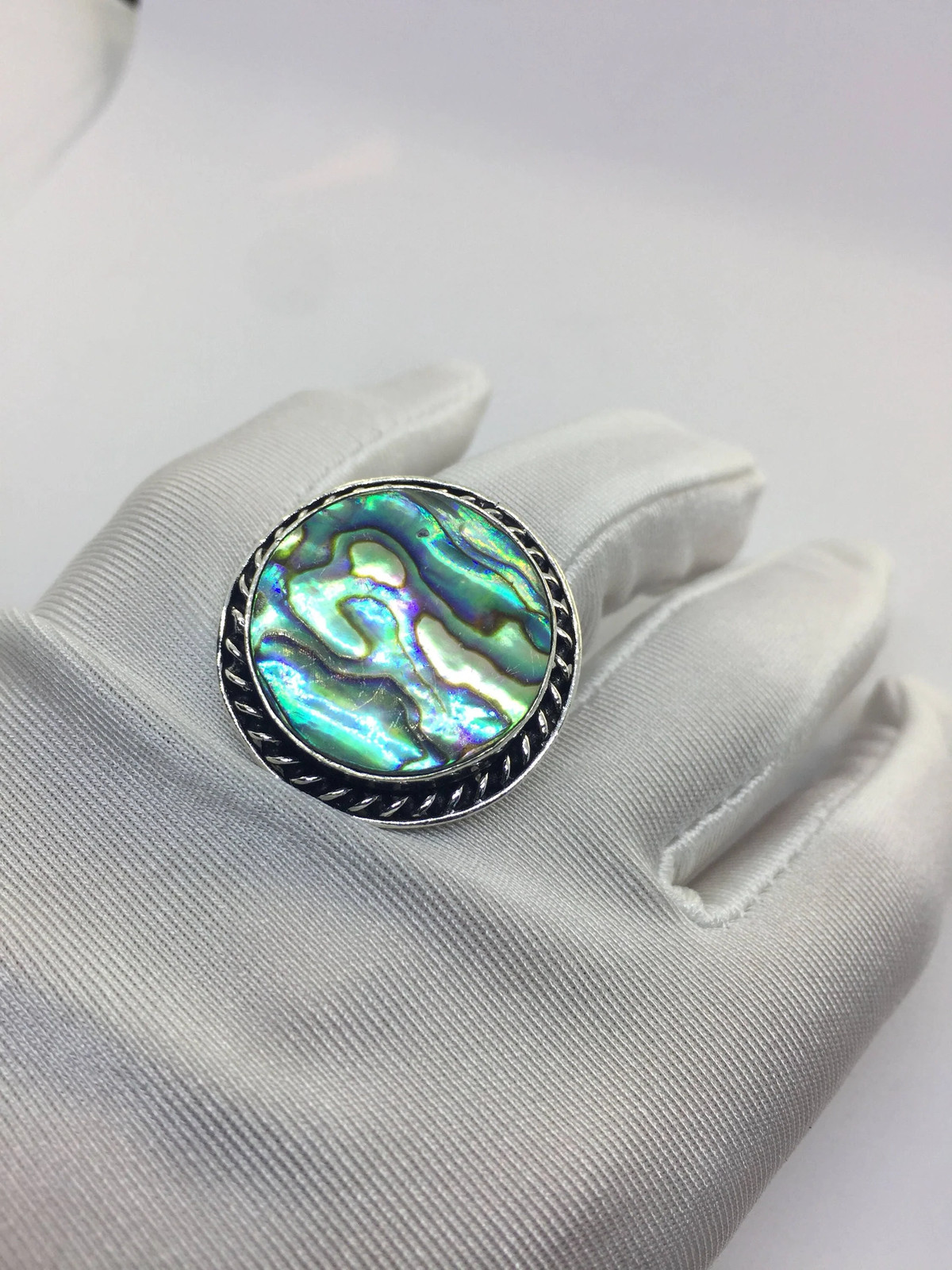 как выглядит Antique Green Abalone White Bronze Silver Ring фото