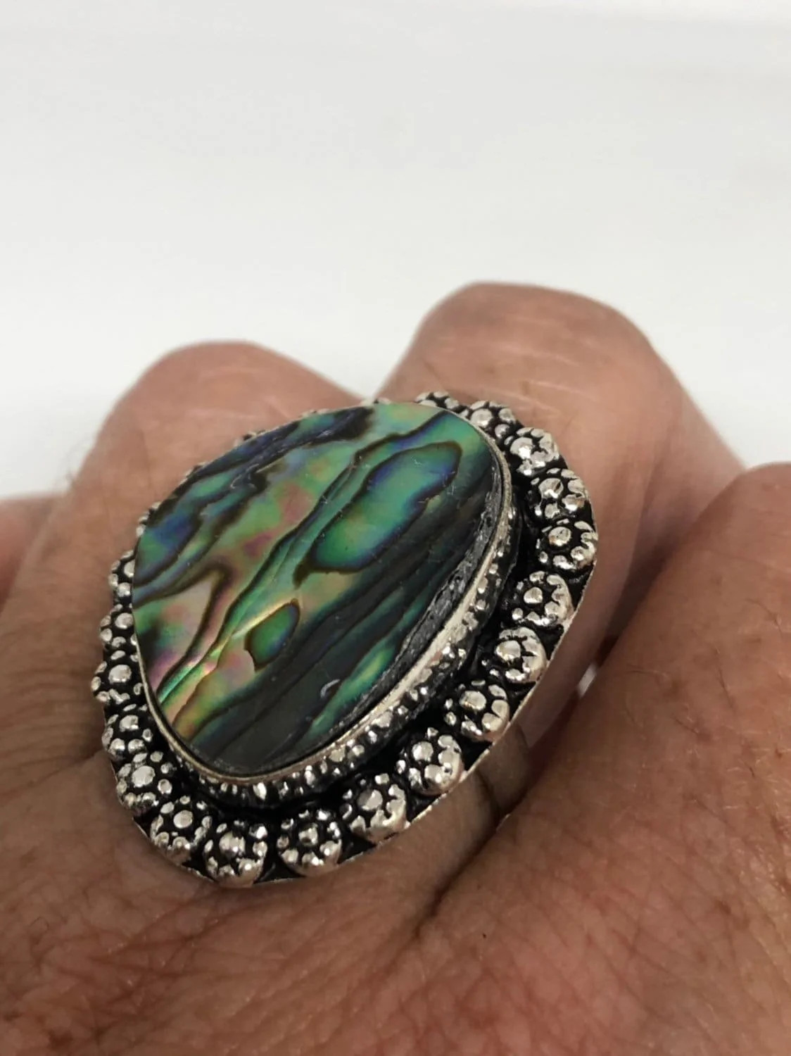 как выглядит Antique Green Abalone White Bronze Silver Ring фото