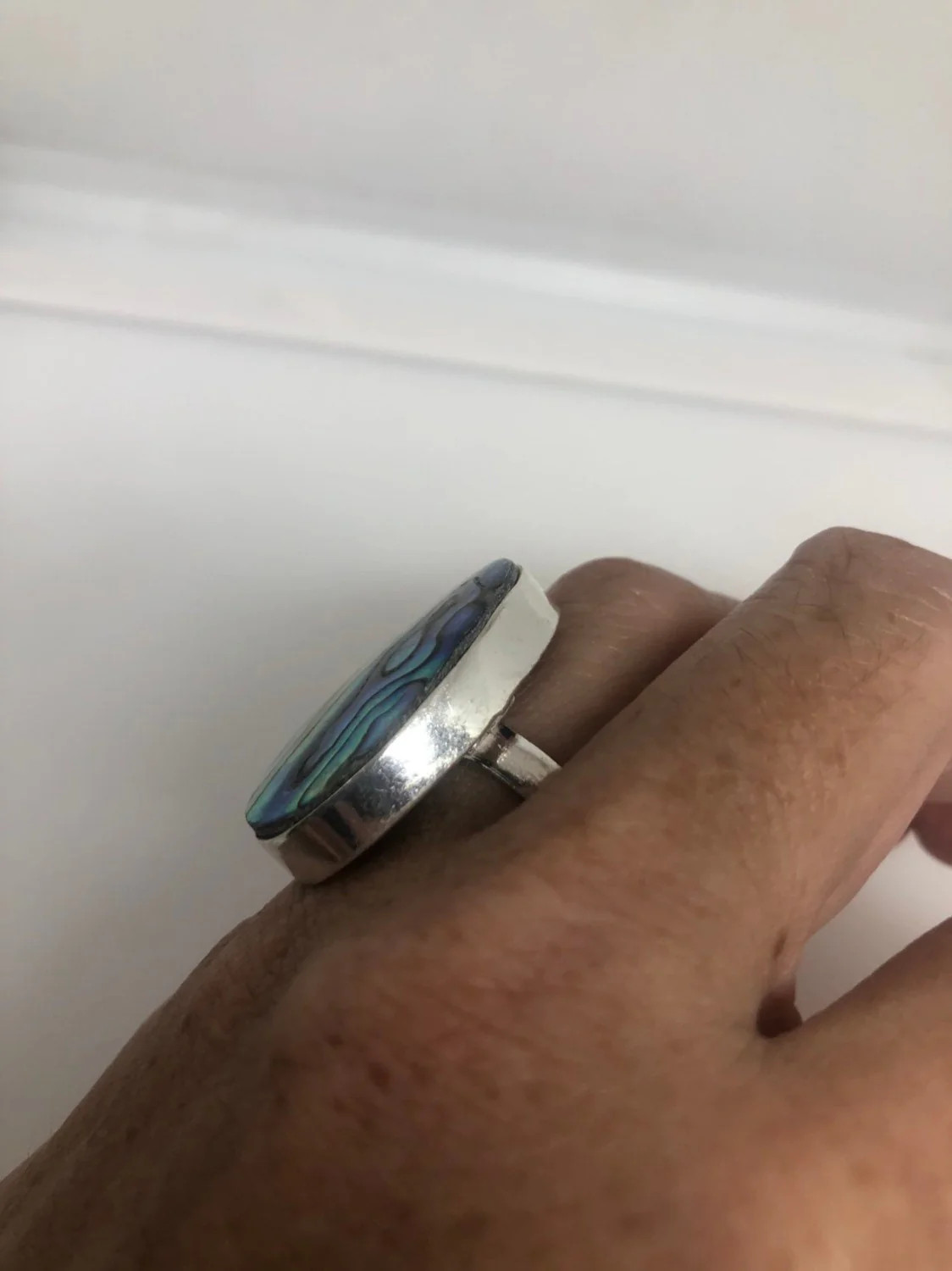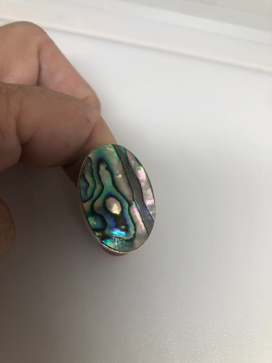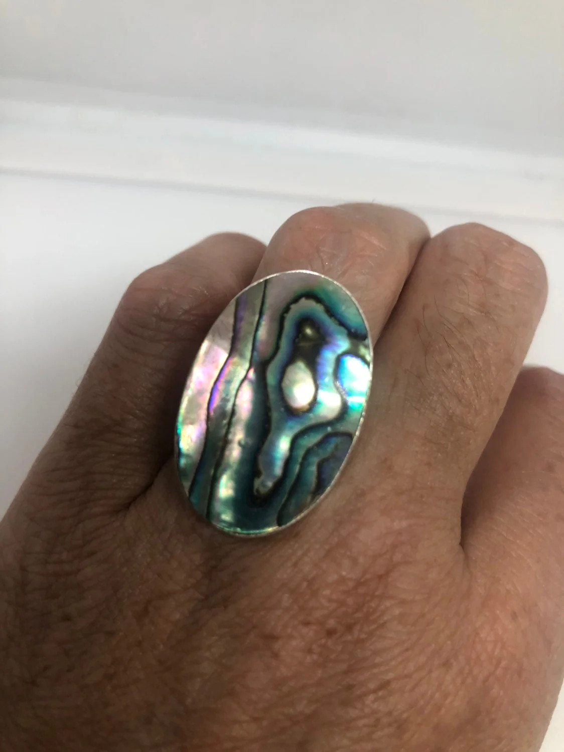 как выглядит Antique Green Abalone White Bronze Silver Ring фото