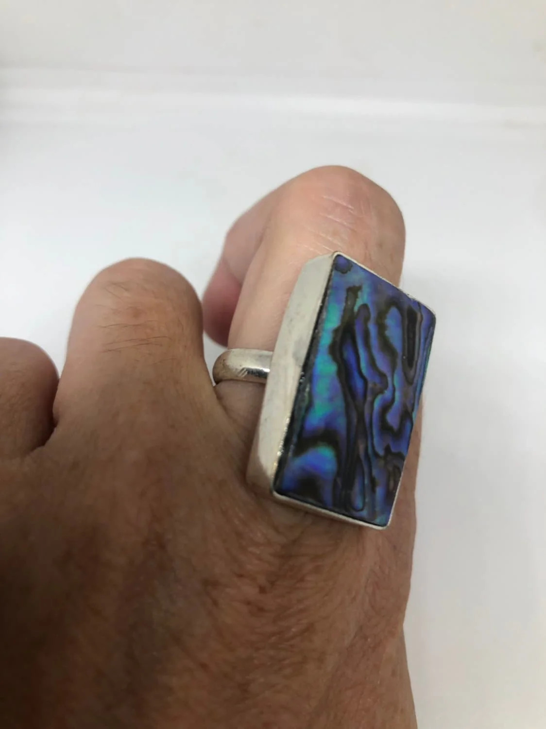 как выглядит Antique Green Abalone White Bronze Silver Ring фото