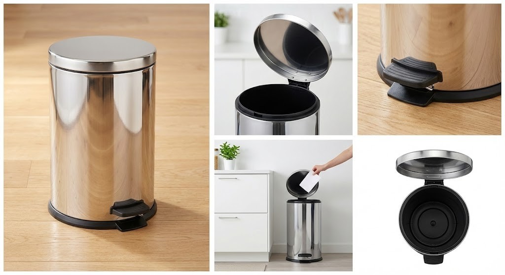 как выглядит 12L Stainless Steel Trash Can with Foot Pedal  Soft Close Lid, Removable Inner фото