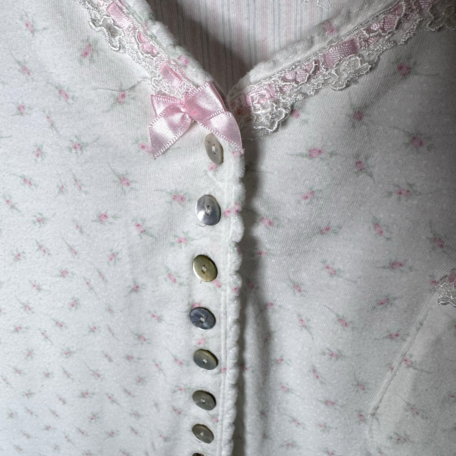 как выглядит Eileen West Cotton Nightgown Sz L Floral Print Lace Trim Short Sleeve Soft READ фото