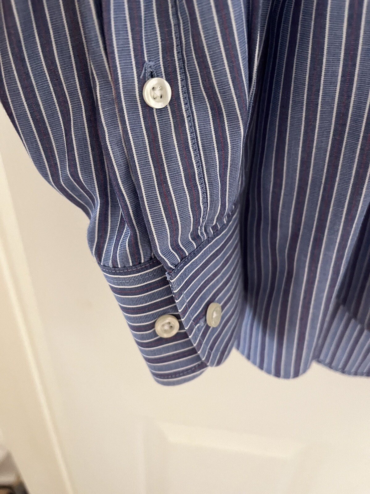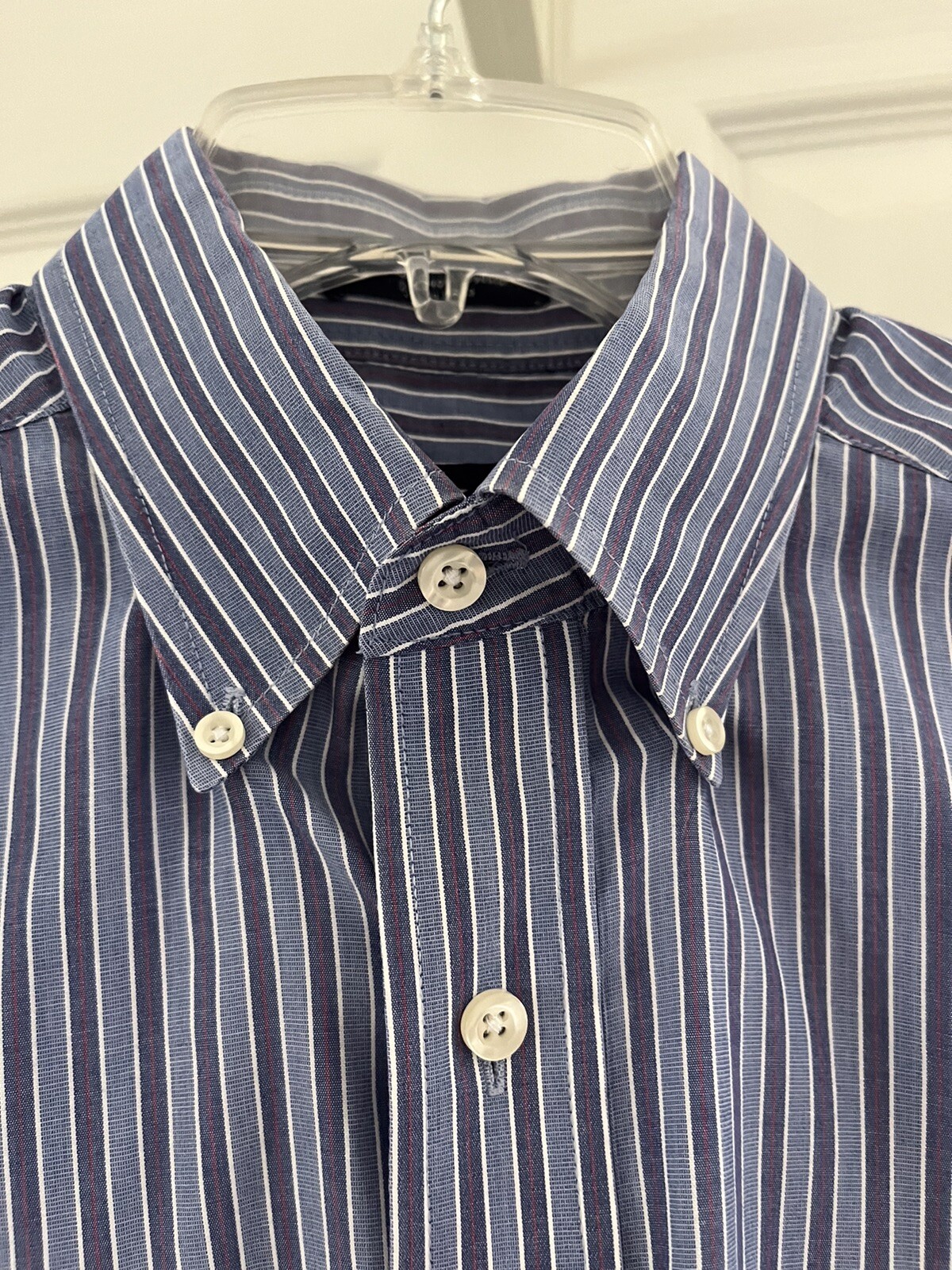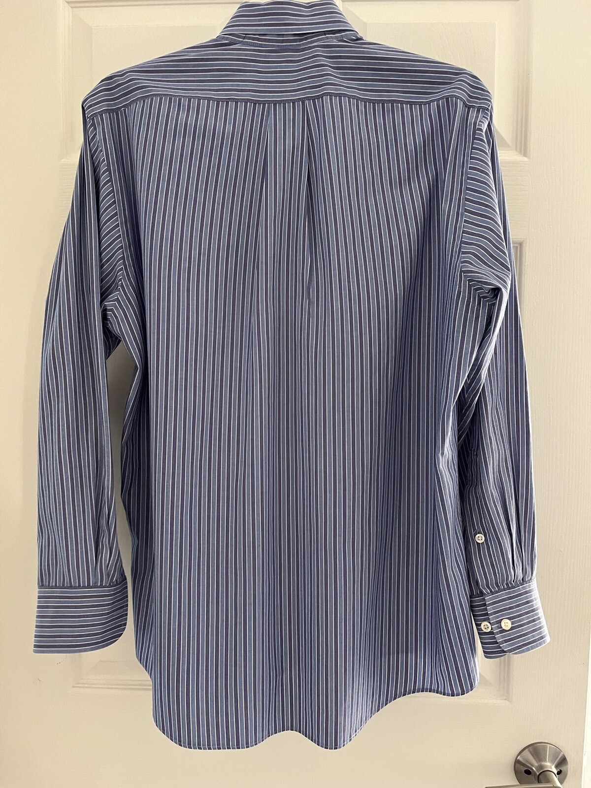 как выглядит Chaps mens long sleeve dress shirt, blue stripe, medium, 15-15 1/2, 7.99 OBO фото