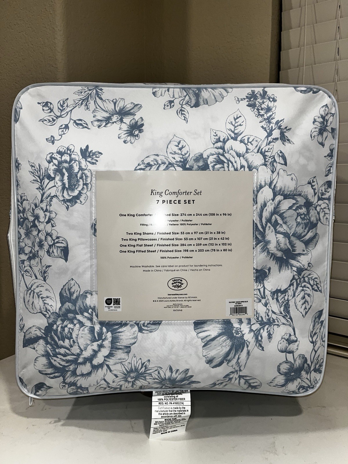 7 PIECES LAURA ASHLEY BLUE DELPHINE KING COMFORTER AND SHEETS SET