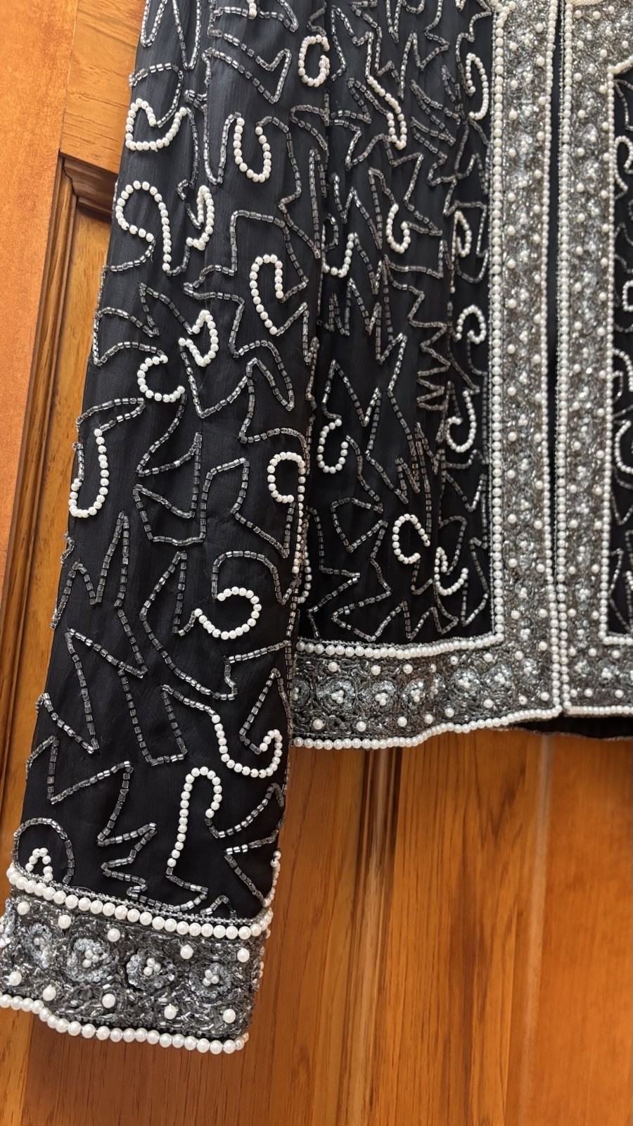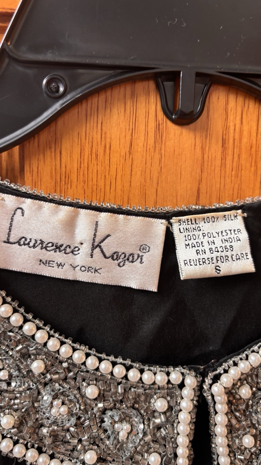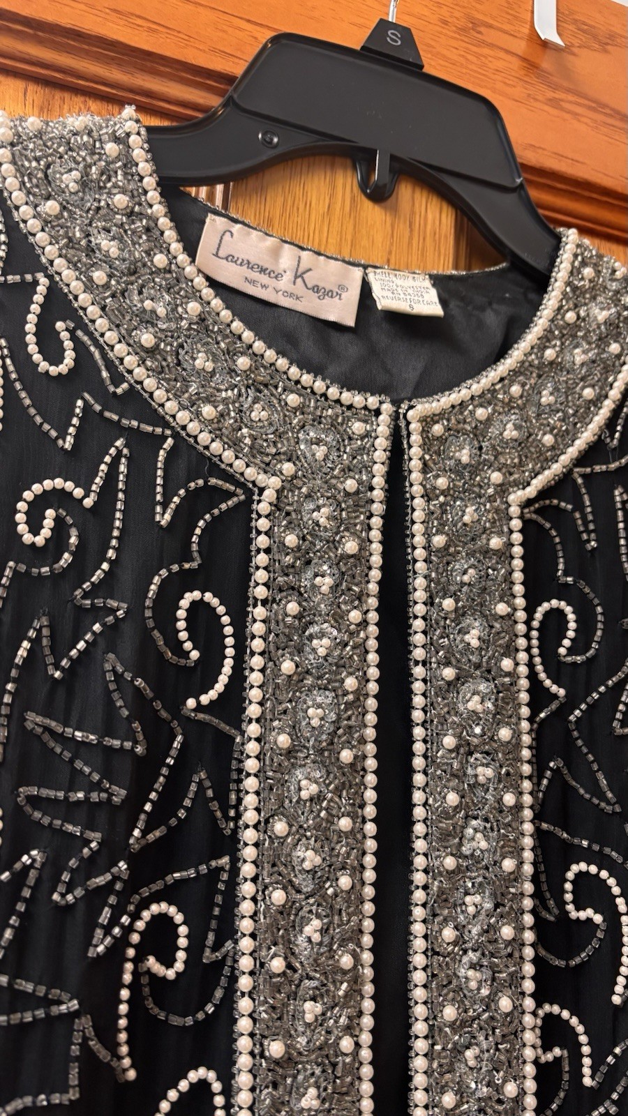 как выглядит Laurence Kazar Vintage Black/Silver Silk Beaded Evening Jacket Sz S Made India фото