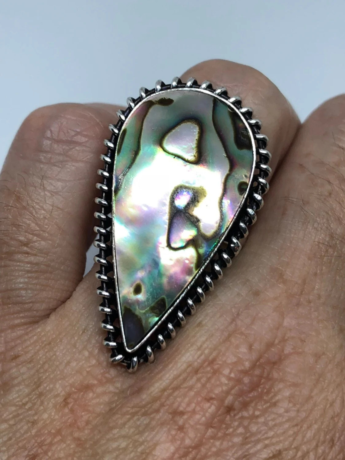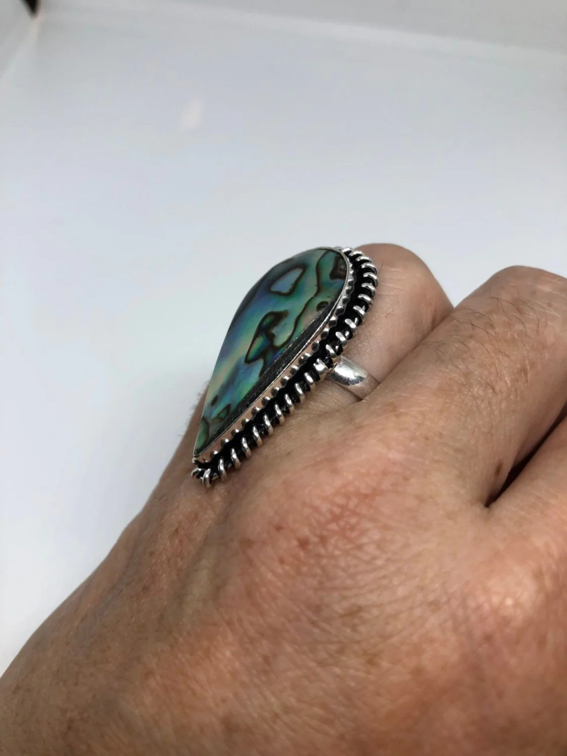 как выглядит Antique Green Abalone White Bronze Silver Ring фото
