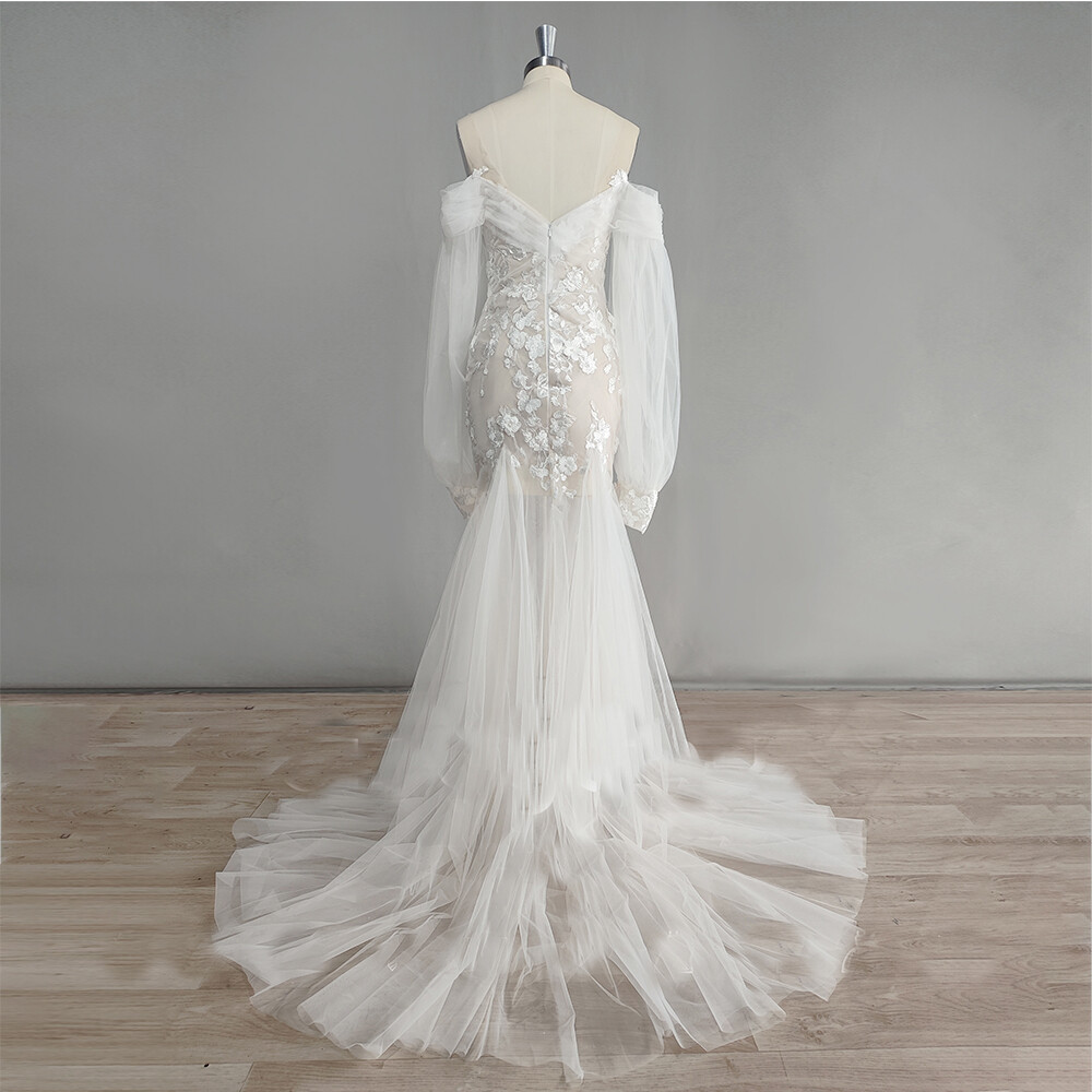 Mermaid Wedding Dresses Tulle Off Shoulder Appliques Bridal Gown Long Sleeves