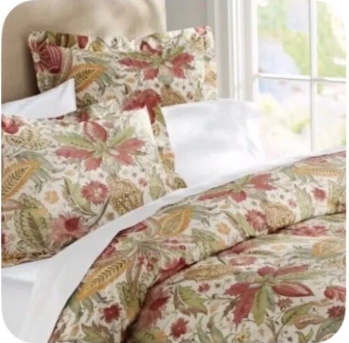 как выглядит Pottery Barn Courtney Organic Cotton Floral Duvet Cover 2 Shams F/Q Green Red фото