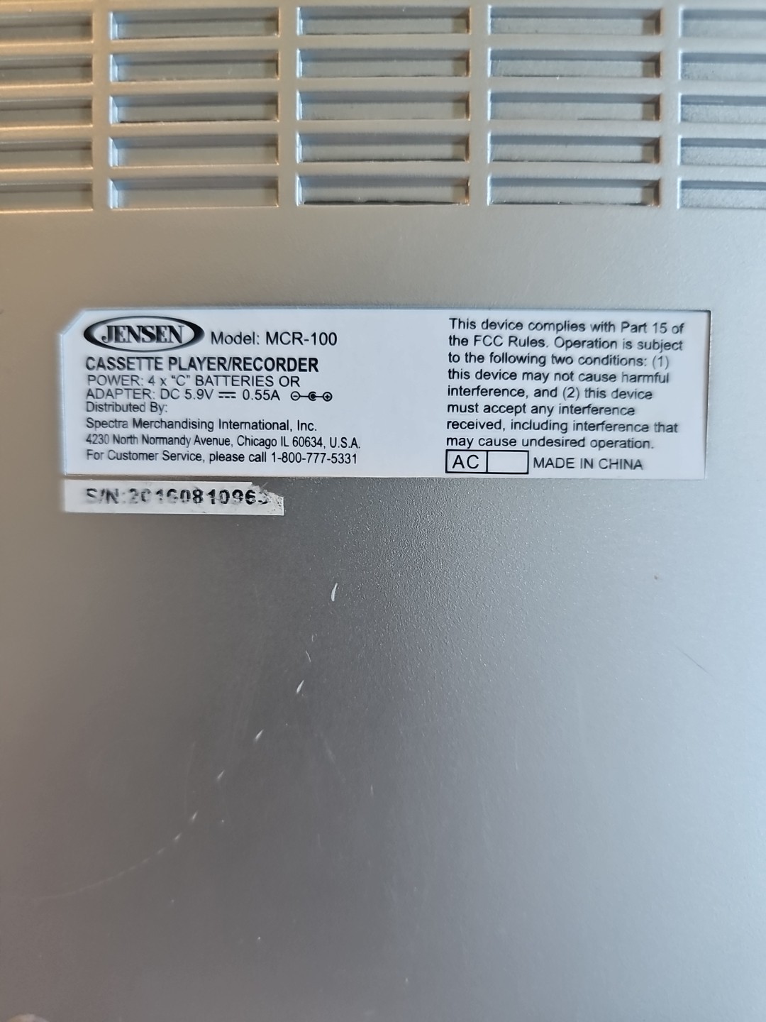 Jensen MCR-100 Cassette Recorder Player with Microphone Used Tested Works
