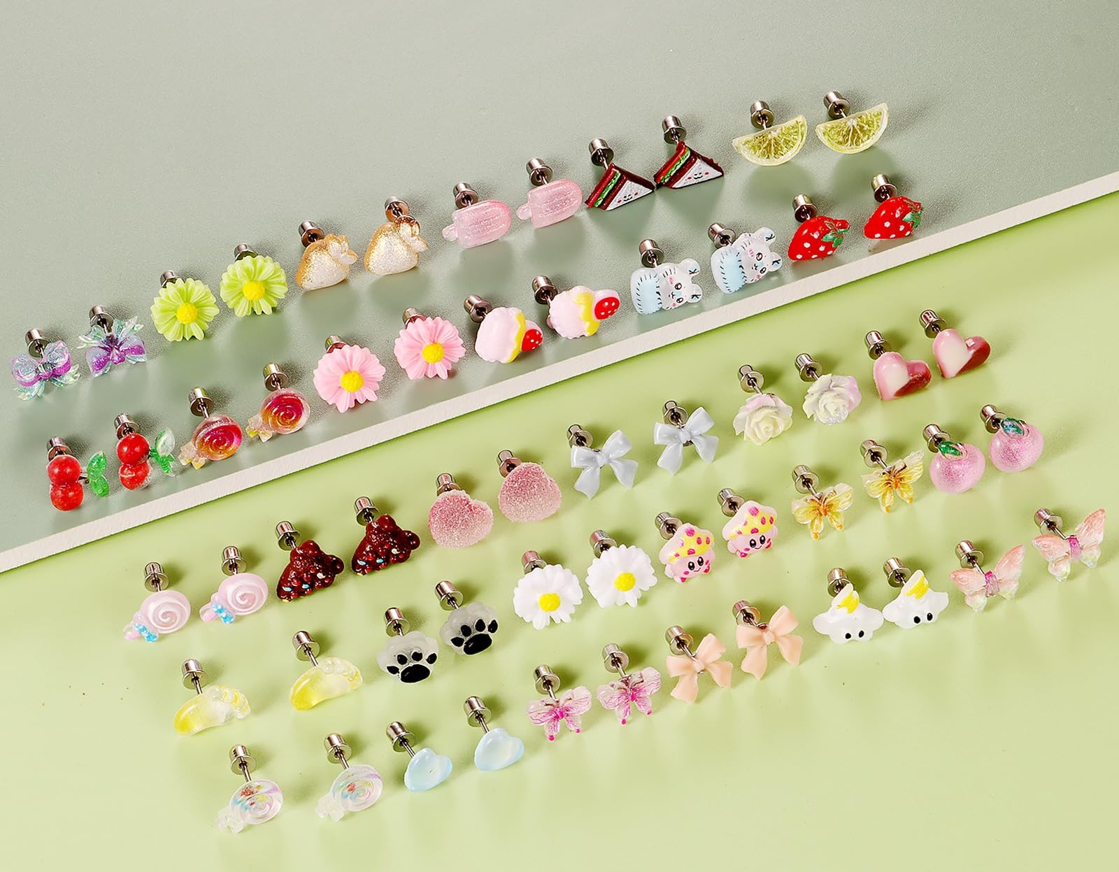 30 Pairs Cute Mini Screw Back Earrings for Girls - Flat Back Earring with Sta...