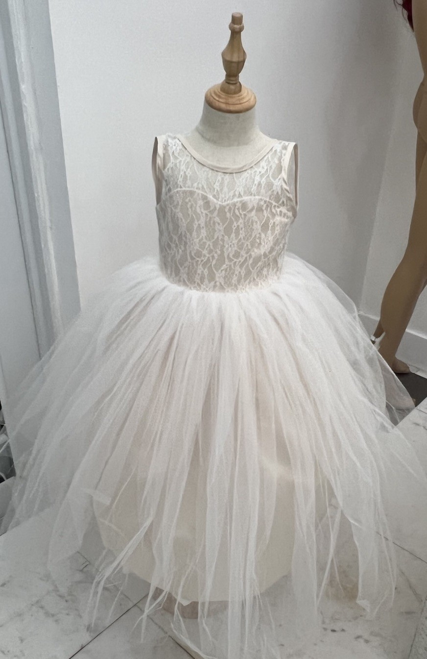Rosebud Tulle Champagne Girls Dress Size 6 Flower Girl