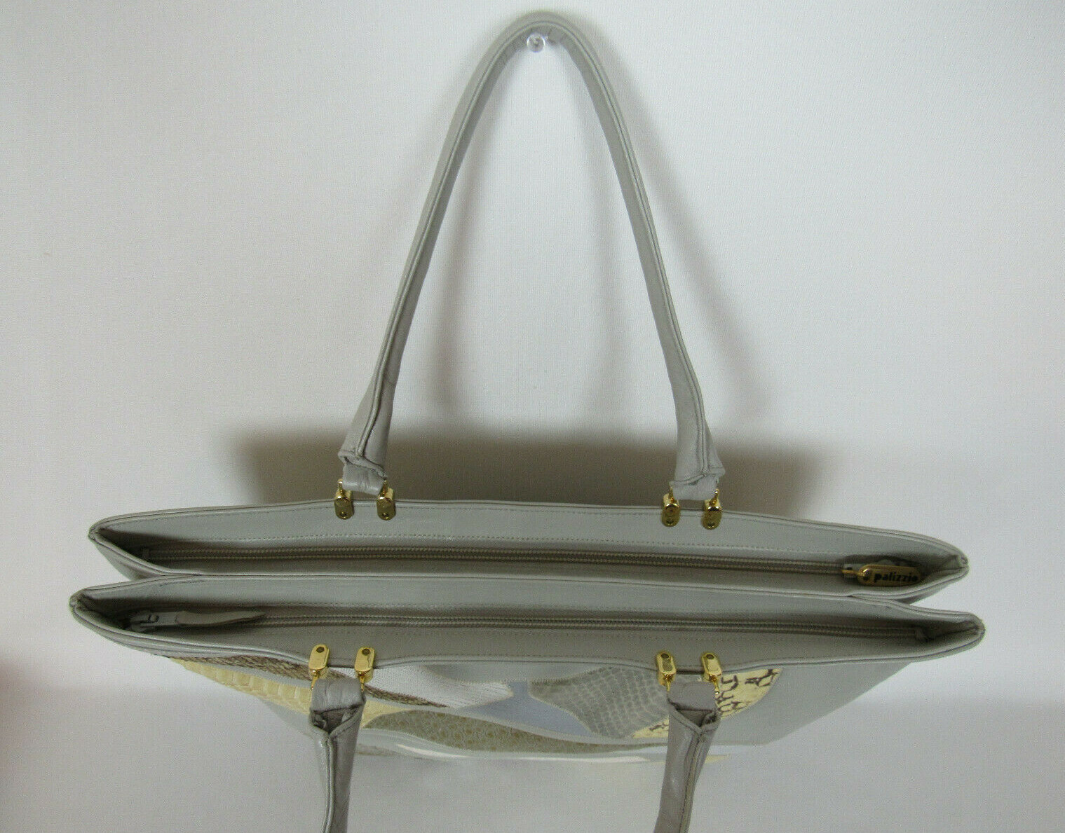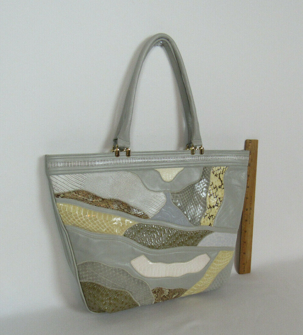 как выглядит NWT VTG 1980s PALIZZIO LEATHER SNAKESKIN HANDBAG SHOULDER BAG WITH RECEIPT 16" фото