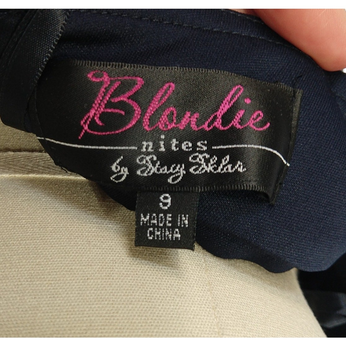 как выглядит Vintage Y2K Prom Dress Formal Gown Size 9 M Navy Blue Gold Open Back Sequins фото