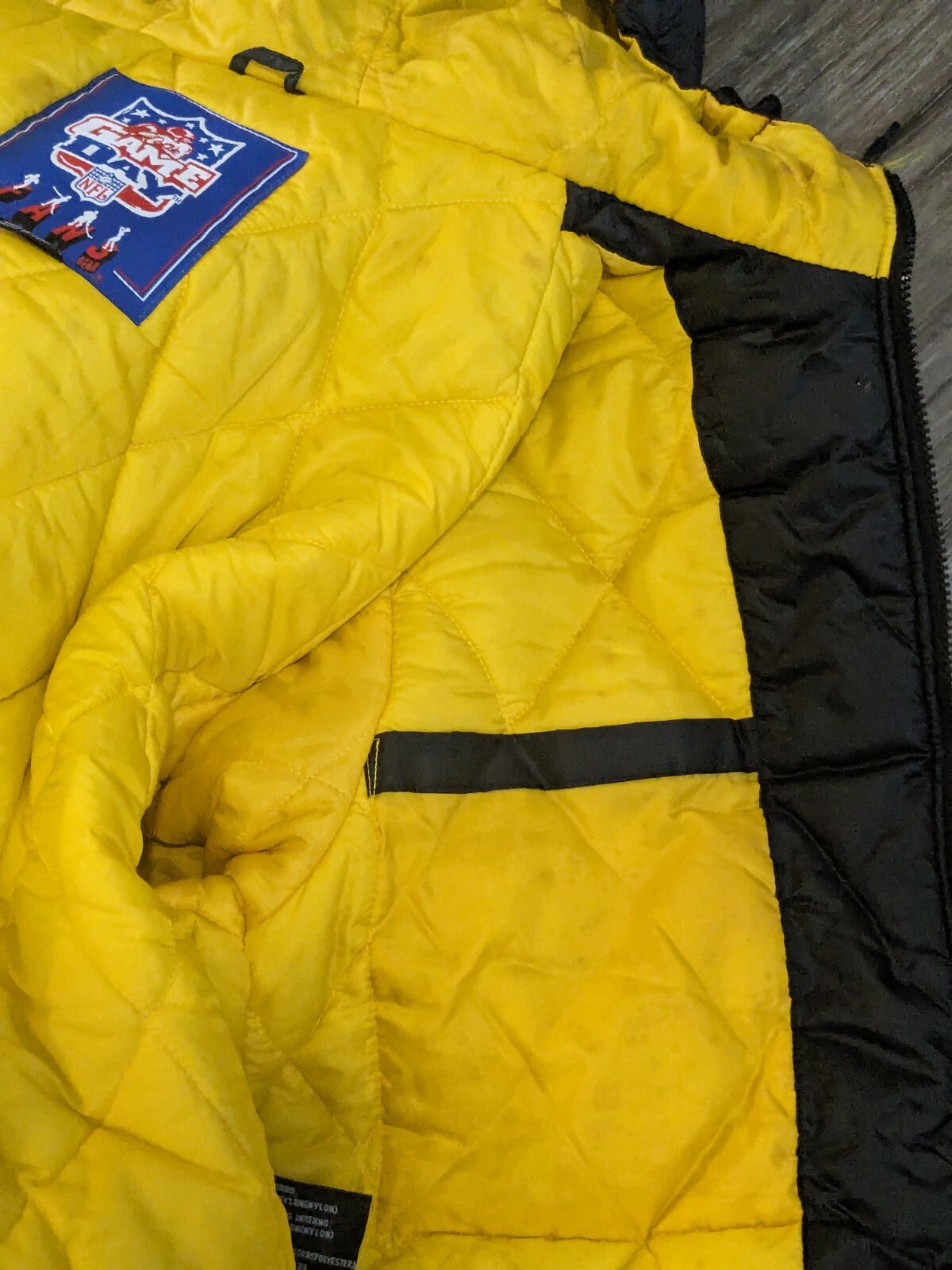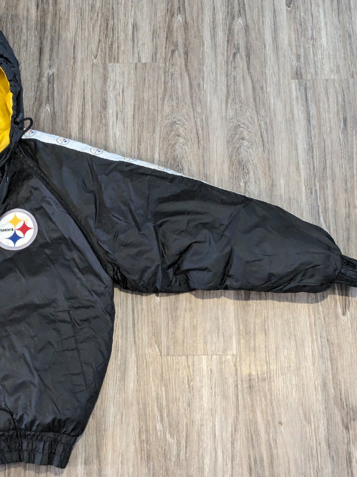 VTG 90s Pittsburgh Steelers Jacket NFL Game Day Hooded Zip Puffer Mens Size L
