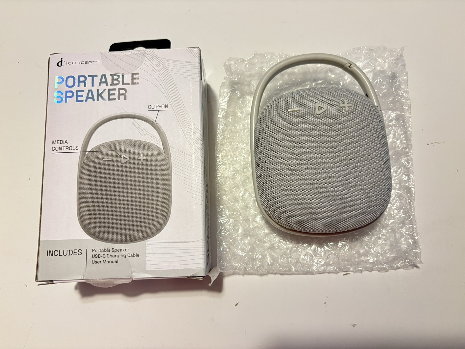 I Concepts Clip-On Portable Bluetooth Speaker Compact, Wireless, Damaged Box