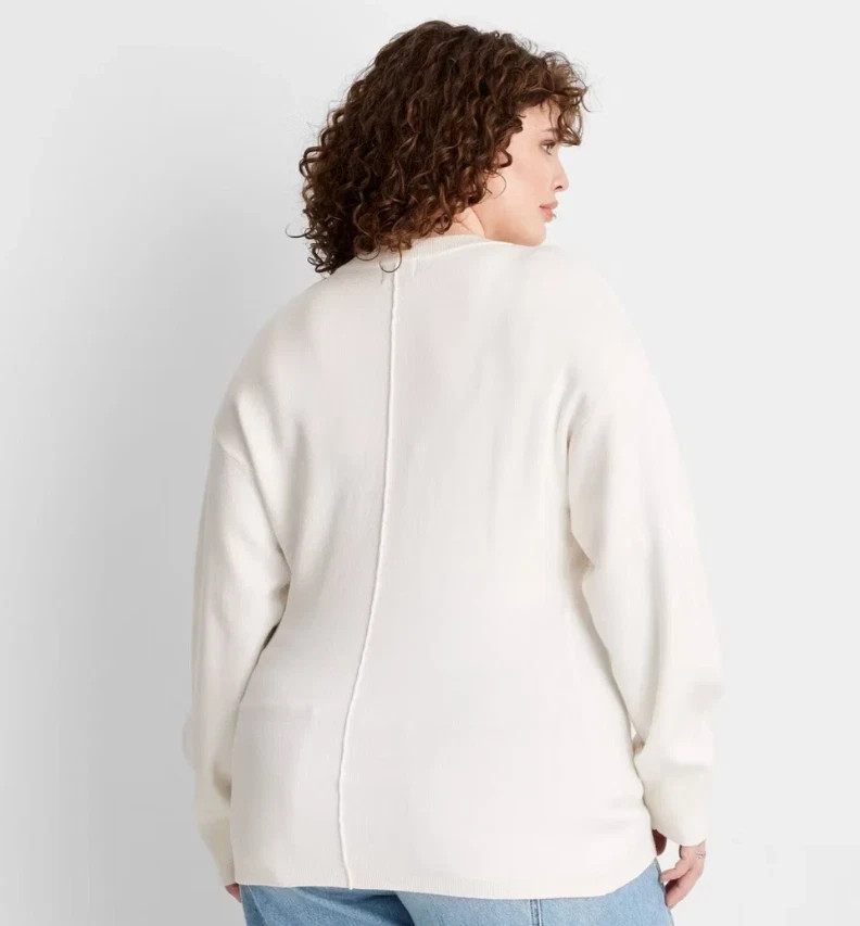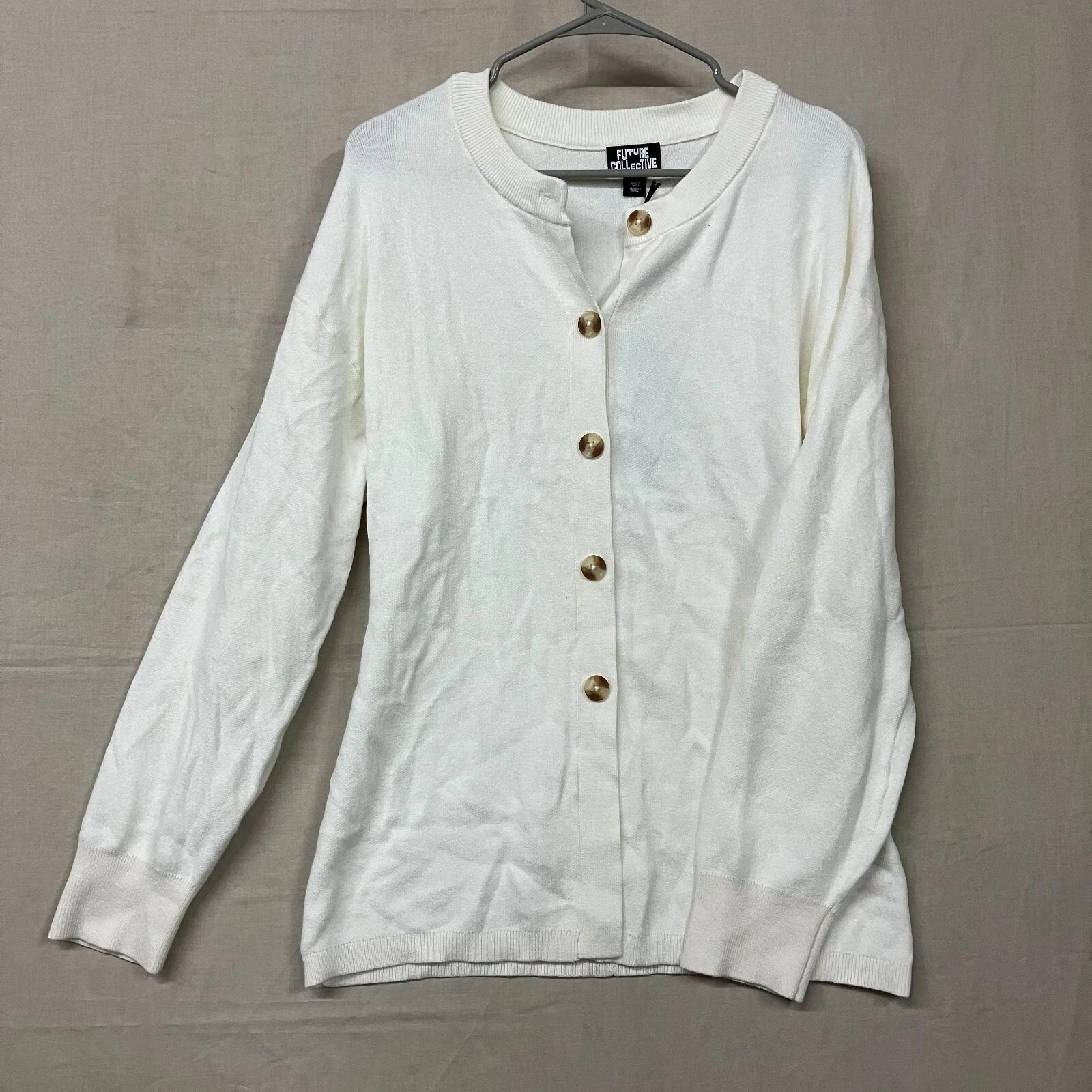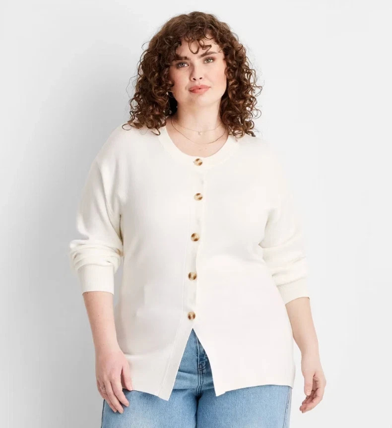 NWT Future Collective Women's White Long Sleeve Nipped Waist Cardigan Sweater